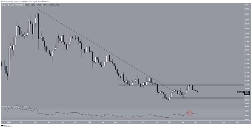 Từ biểu đồ phía dưới, giá XLM đã tạo ra hai nến giảm giá khác sau khi đảo chiều và đang trong quá trình tạo nến thứ ba, giảm dần về vùng hỗ trợ 0.075 USD.
