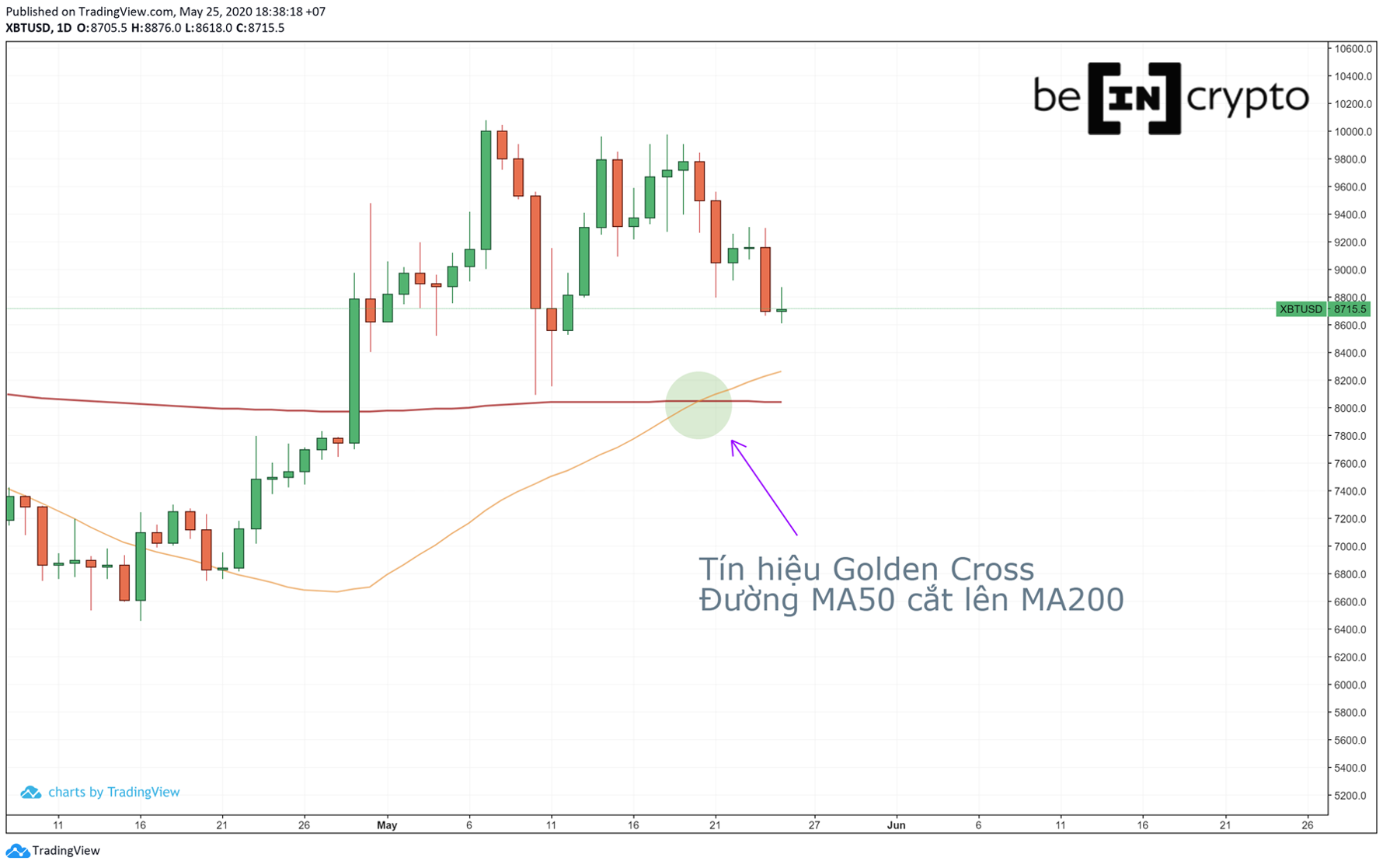 Ngoài ra, còn một tín hiệu tích cực cho việc giá sẽ tăng trong dài hạn, đó là xuất hiện Golden Cross. Dù rằng đôi khi tín hiệu Golden Cross này lại thất bại.