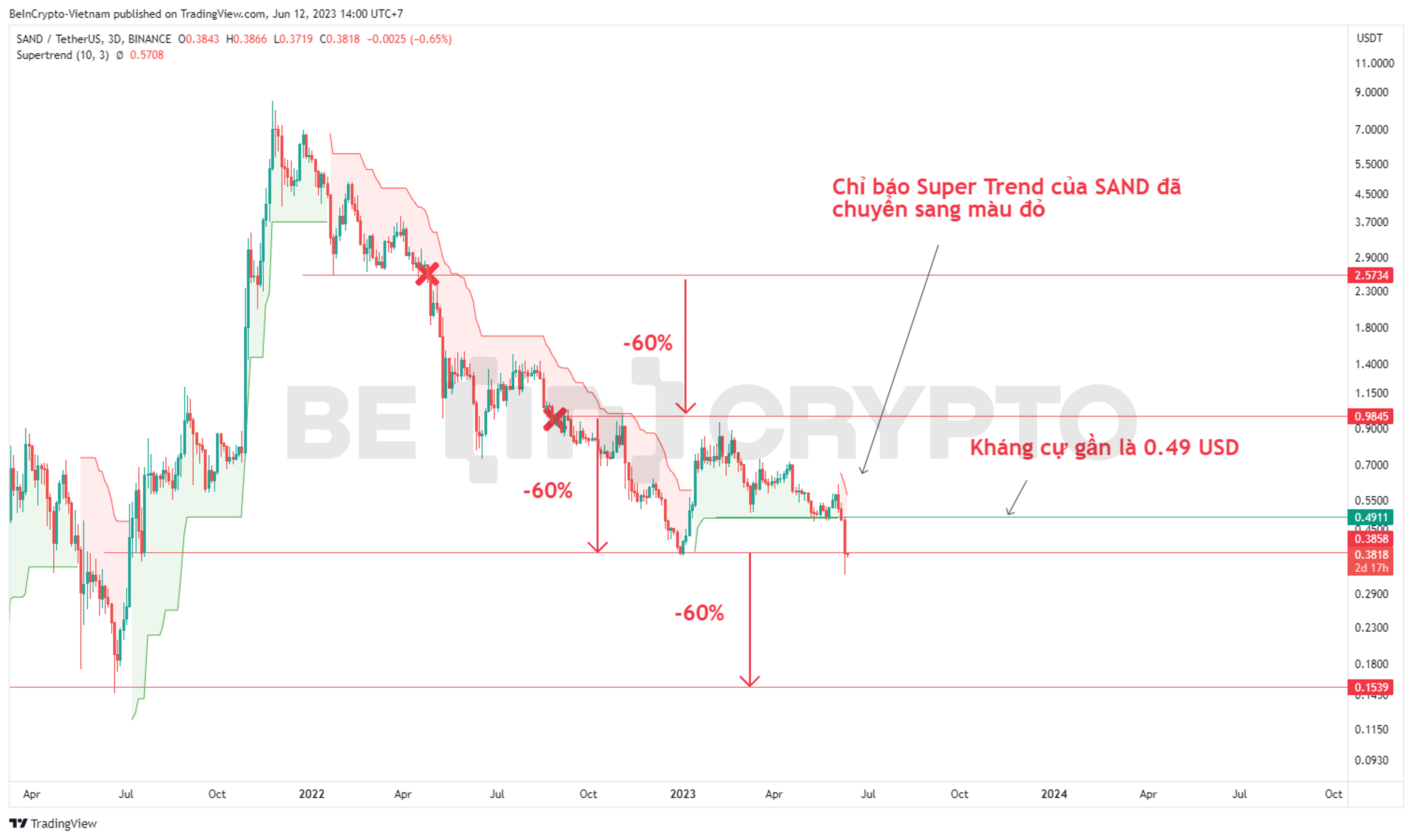 #2. SAND – Khả năng giảm thêm 60% trong năm 2023