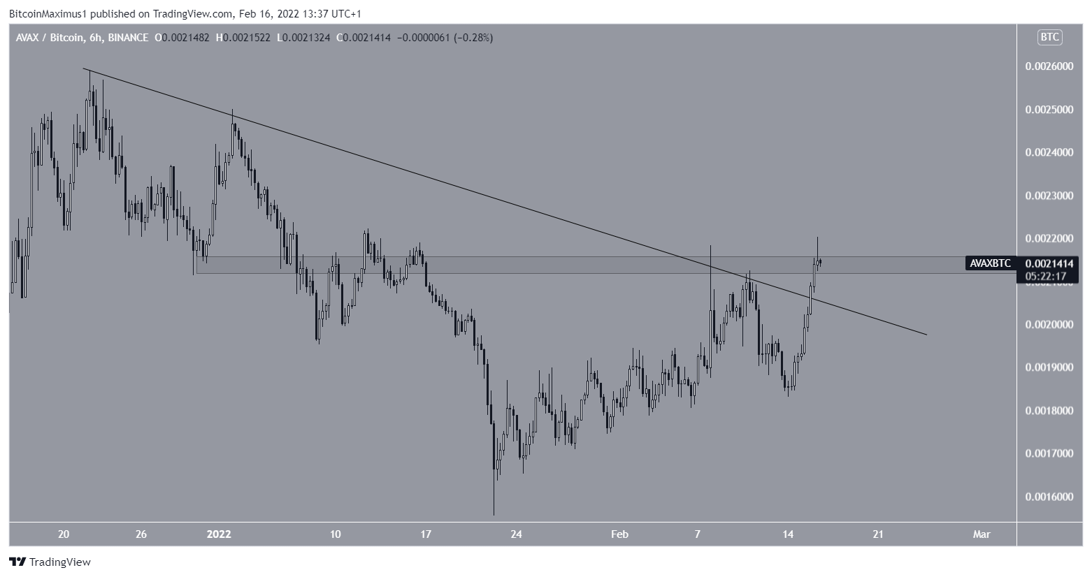 Cặp tỷ giá AVAX / BTC cho thấy một chuyển động giống với cặp tỷ giá AVAX / USD, vì giá đã thoát ra khỏi đường kháng cự giảm dần, và đang vật lộn với vùng kháng cự 214,000 satoshi.