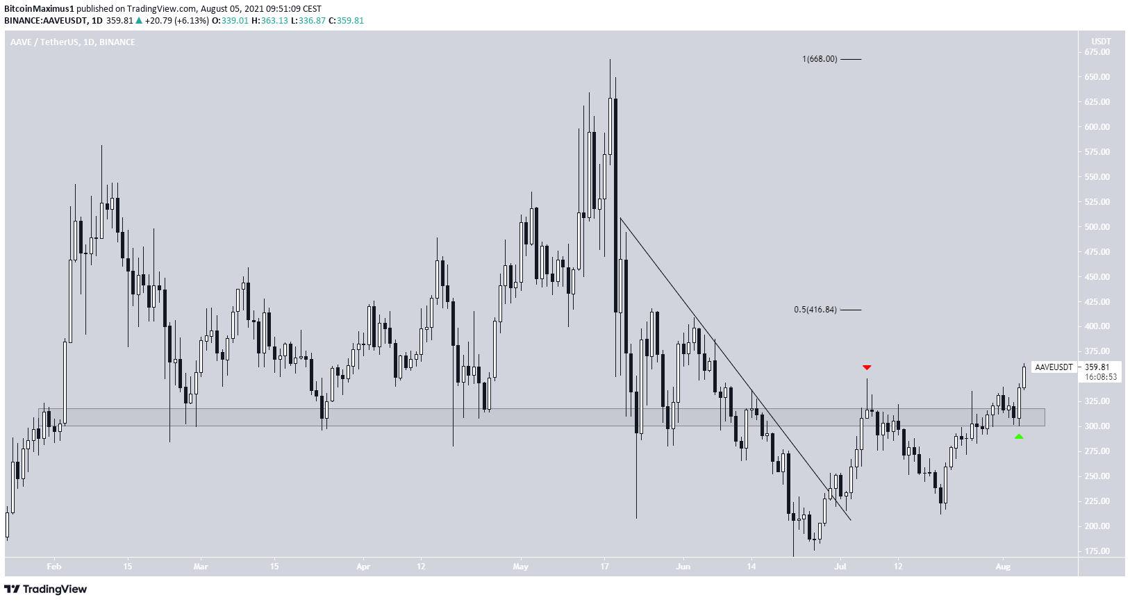 AAVE đã xác nhận khu vực này là hỗ trợ sau hai ngày và hiện đang tăng về phía mức kháng cự gần nhất tiếp theo ở mức 416 đô la.