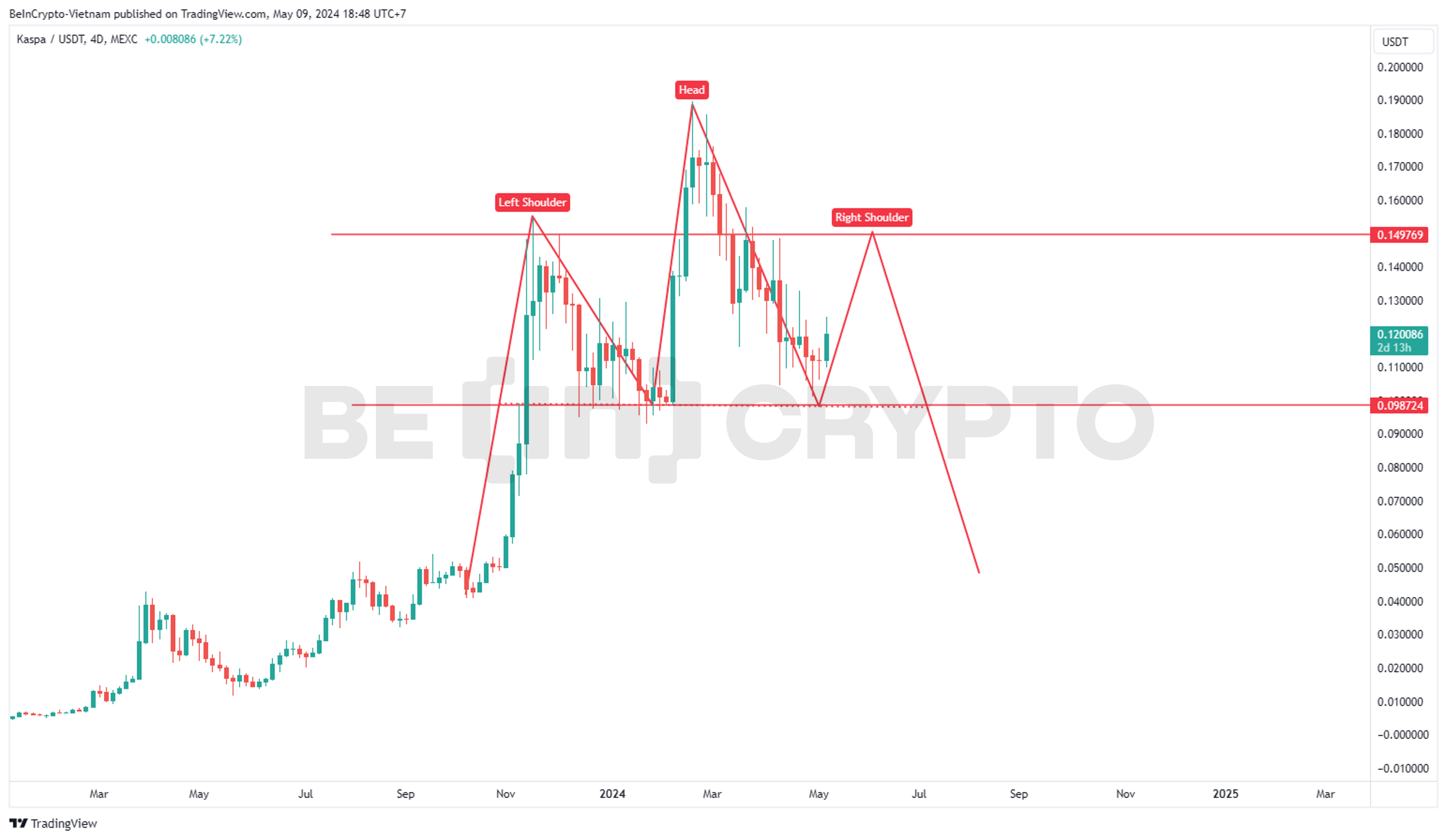 3. Kaspa (KAS) – Khả năng hoàn thành mô hình vai đầu vai trong Q2/2024