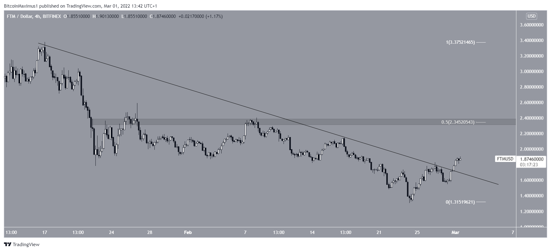 Giá FTM đã tăng kể từ đó và đang tiếp cận vùng kháng cự 1.95 USD.
