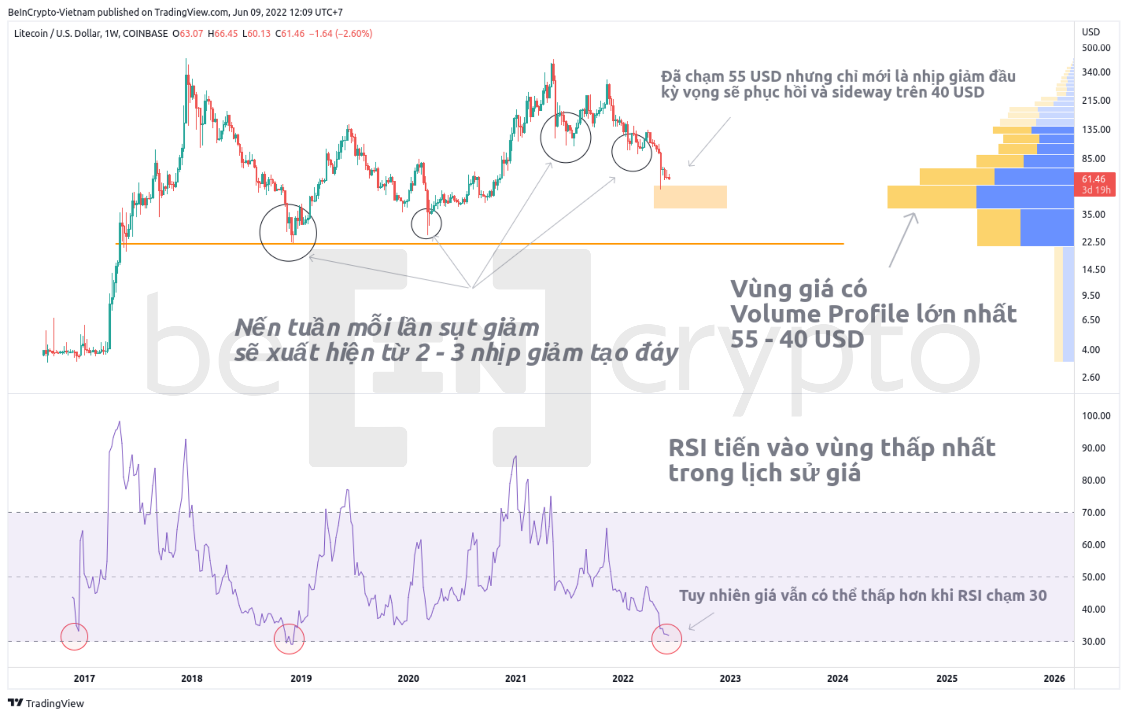 Phân tích kỹ thuật LTC với RSI và Volume Profile
