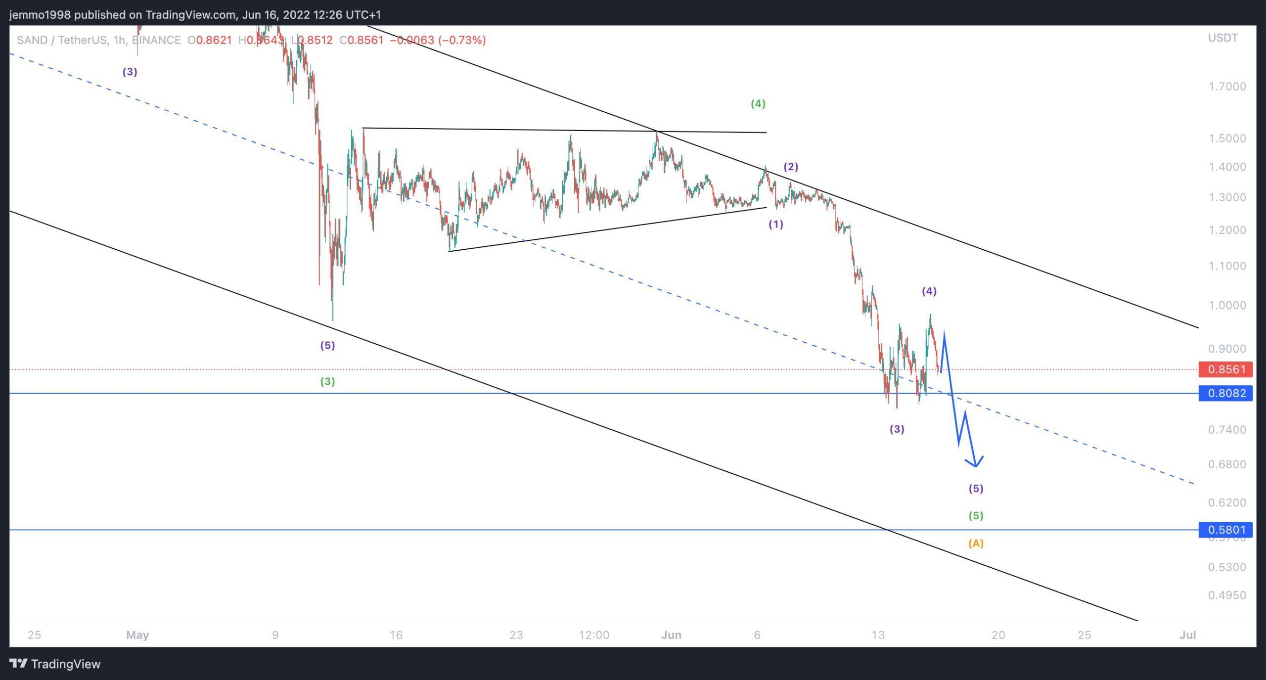 Nhà giao dịch tiền điện tử @JacobEmmerton đã nhận định về biểu đồ giá SAND và chỏ rằng một xu hướng giảm khác có khả năng xảy ra trước khi có sự đảo chiều tăng giá.