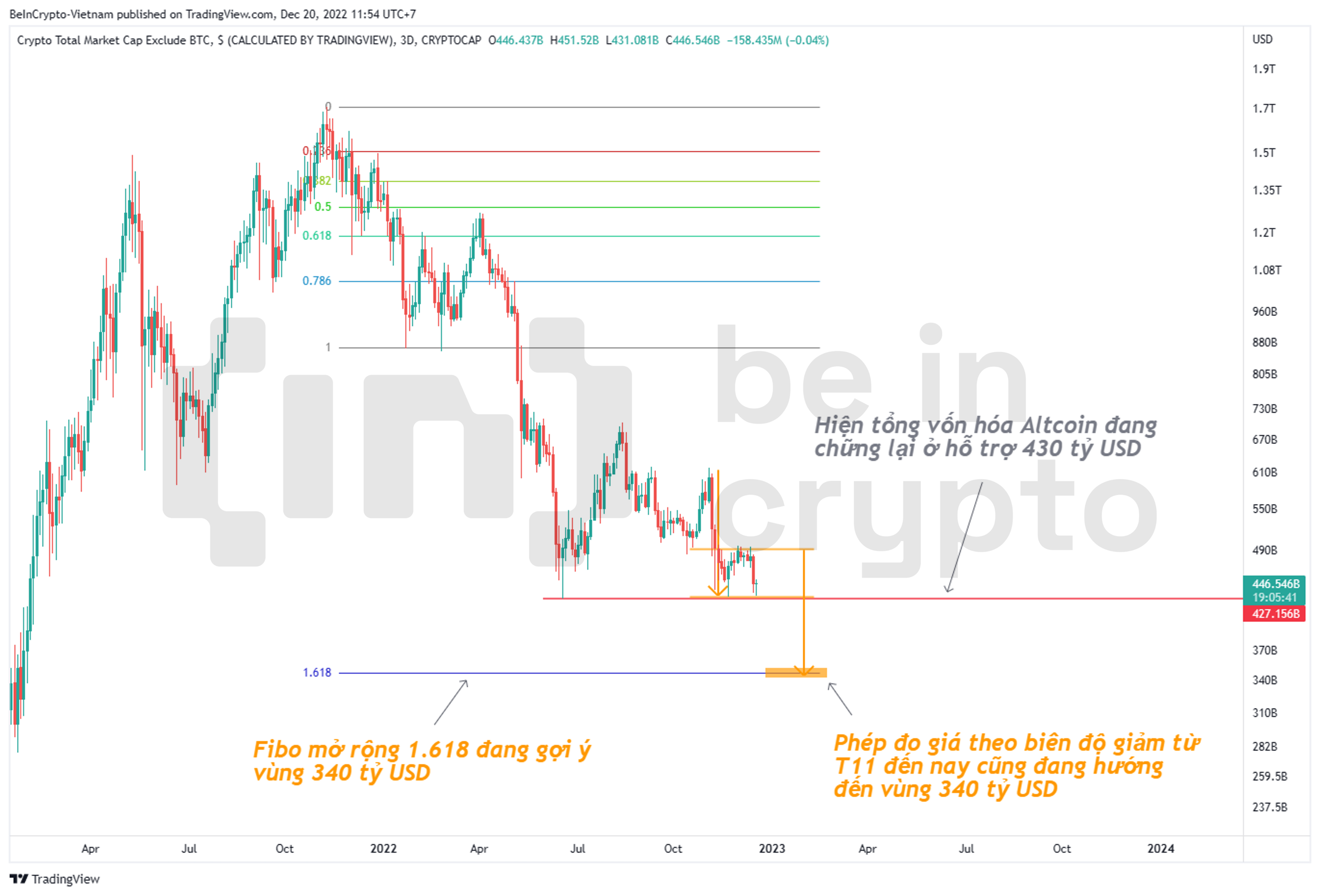 Sponsored- Thời điểm BeInCrypto viết bài này, vốn hóa Altcoin có phản ứng tại hỗ trợ 430 tỷ USD. Nhưng toàn bộ cấu trúc biến động cả năm qua liên tục tạo đỉnh thấp hơn, do đó nhà đầu tư cần lường trước kịch bản xấu tiếp tục xảy ra.