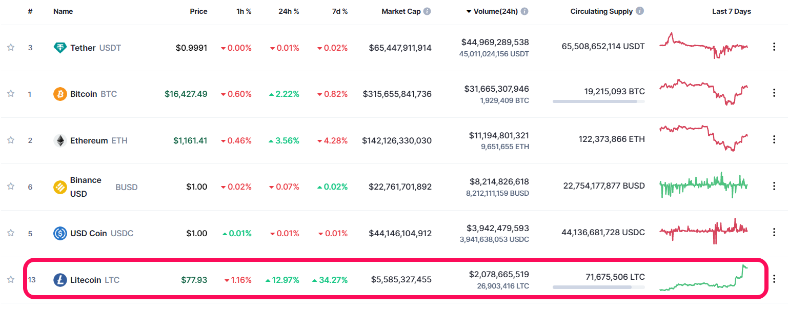 Nếu không kể đến các loại stablecoin thì khối lượng giao dịch trong 24h của LTC chỉ đứng sau Bitcoin và Ethereum mà thôi. Với hơn 2 tỷ USD giao dịch trong 24h, đó là tín hiệu sớm cho thấy có lực mua quay trở lại với Altcoin.