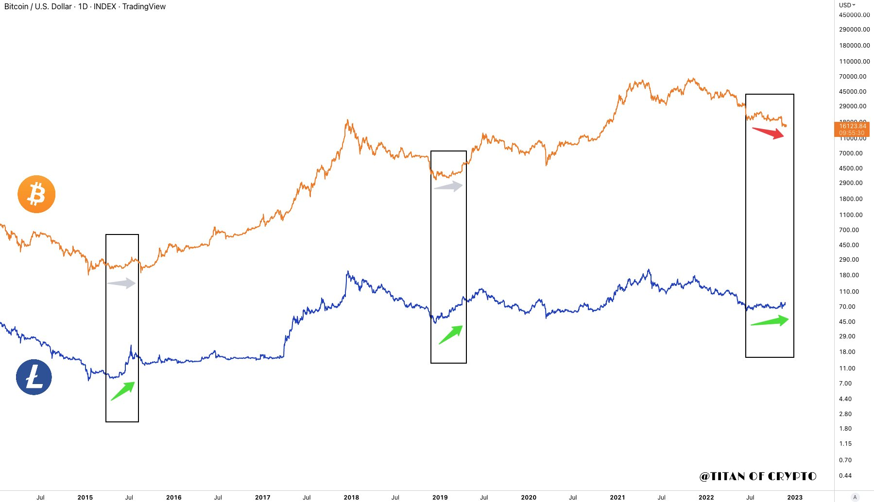 Có một so sánh rất thú vị về hành vi giá của LTC trong quá khứ mỗi lần Bitcoin giảm mạnh.
