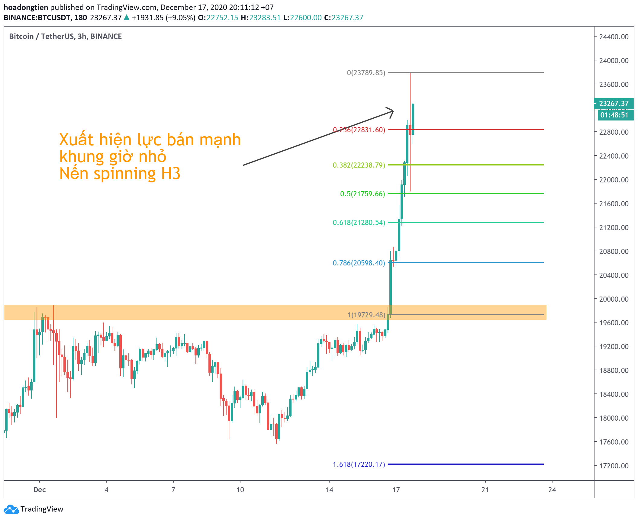Tuy nhiên, tháng 12 vẫn còn 2 nến tuần nữa mới kết thúc. Nên chúng ta chưa thể kết luận dự đoán đảo chiều ngay lúc này. Để đưa đến kết luận đó, ít ra chúng ta cũng chờ đợi một nến tháng với râu nến trên dài hơn thân nến, hoặc nến dạng pinbar.