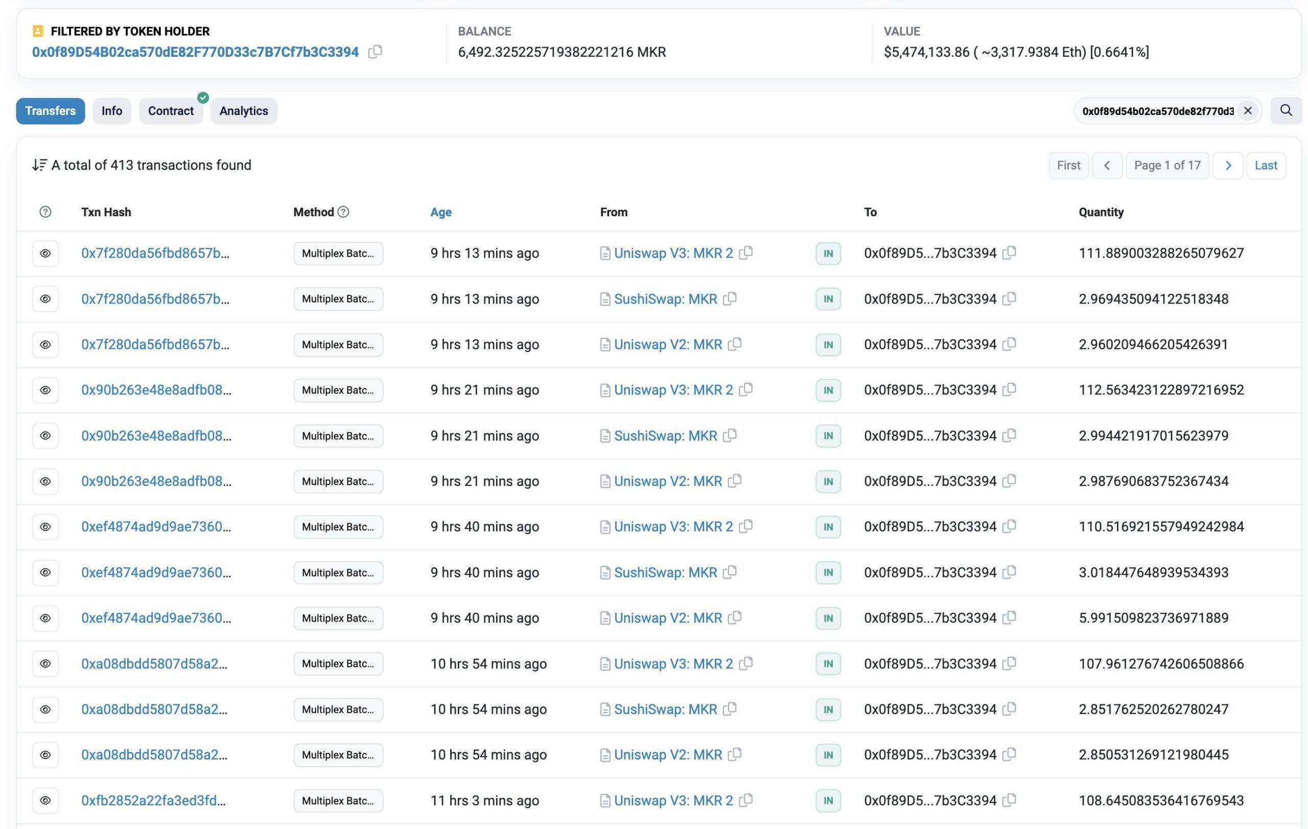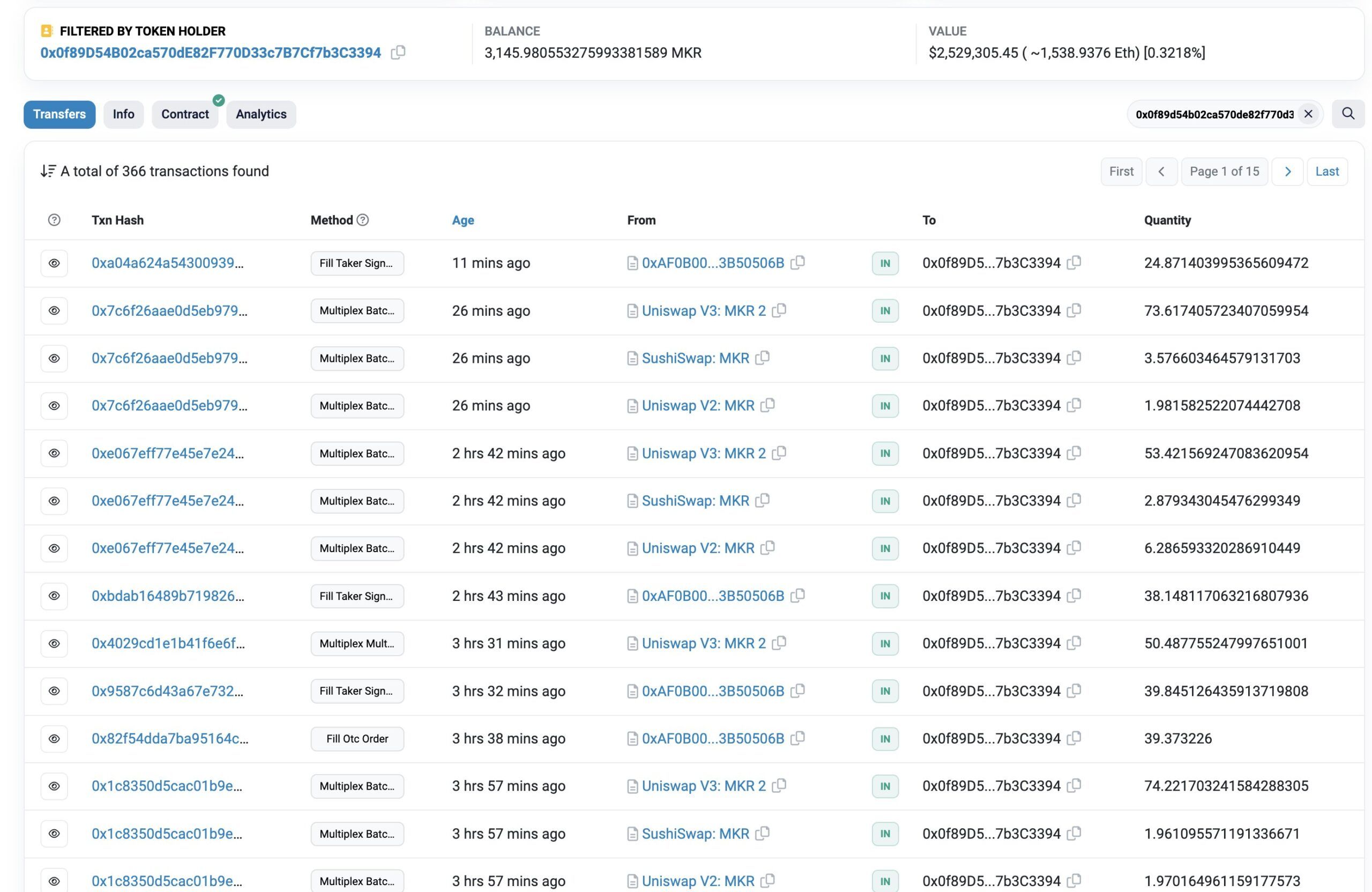 Hoạt động tích lũy MKR của ví này bắt đầu từ tháng 11/2022. Cụ thể: