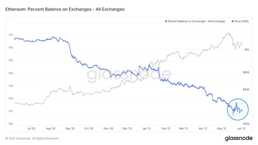 Nhìn chung, sự quan tâm đến ETH vẫn đang ở mức cao, số lượng staking gia tăng. Tỷ lệ phần trăm nguồn cung bị khóa trong các hợp đồng thông minh thậm chí còn cao hơn trước.