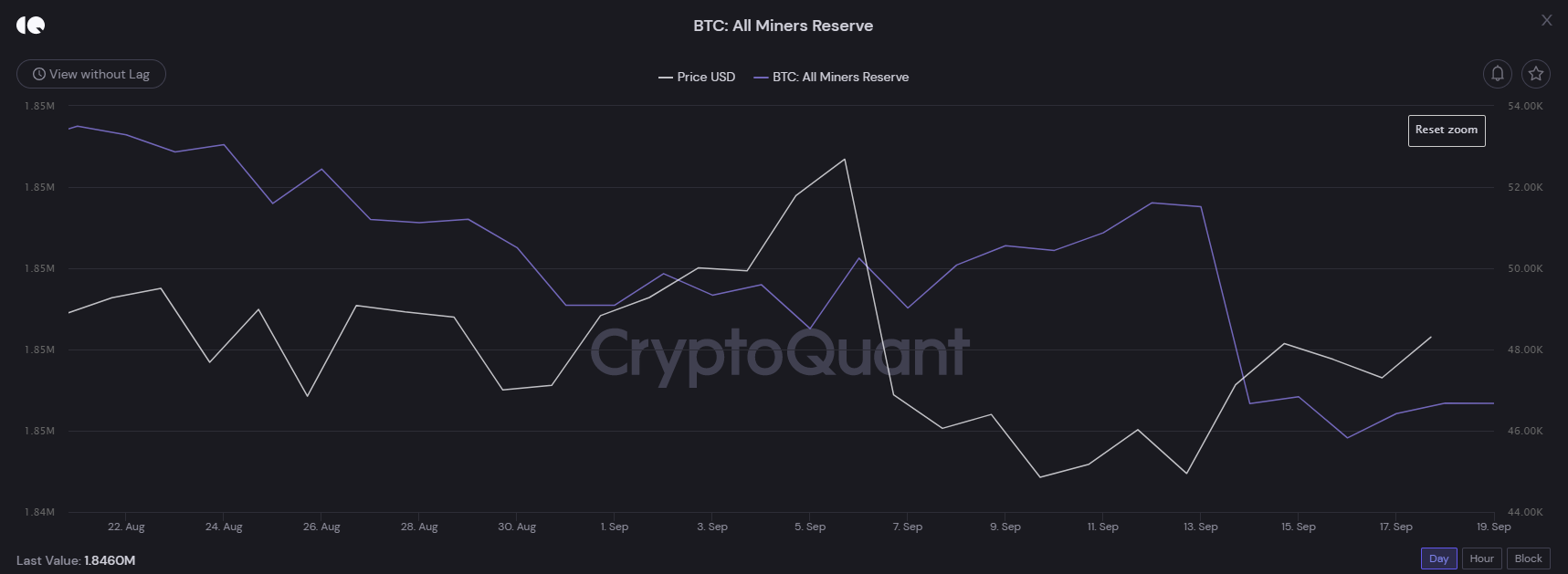 Tạo ra xu hướng giảm giá trong tuần qua có thể liên quan đến việc các thợ đào bán tháo Bitcoin của mình. Tuy nhiên, dựa theo chỉ số MPI, giả thuyết đó có phần ngược lại. MPI phần lớn đều trong vùng số âm và hiện tại đang dừng ở mức -0.5795. Điều này cho thấy, không những thợ đào không bán mà thậm chí họ còn có dấu hiệu tích lũy thêm.