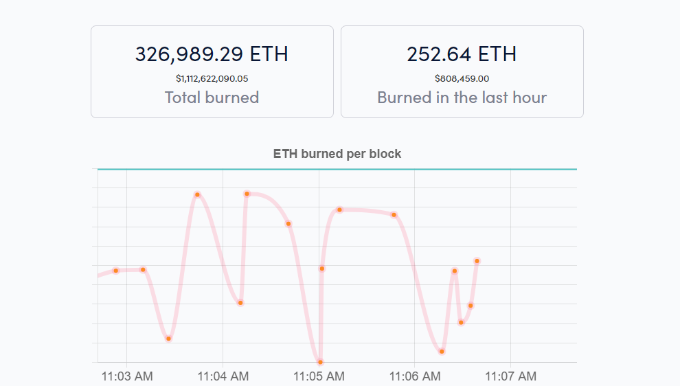 Một chỉ số khác liên quan đến Ethereum 2.0 chúng ta cũng nên lưu ý là số lượng ETH bị đốt đi theo đề xuất EIP 1559. Có 326,986.48 ETH (tương đương với 1,112,616,483.07 USD theo tỷ giá tại thời điểm viết bài) đã bị đốt đi. Tình lệ lạm phát trên mạng lưới hiện đang ở mức 4%. Nếu tình hình này diễn ra thường xuyên, mạng lưới Ethereum không những duy trì được mức lạm phát thấp mà còn có thể giảm phát trong tương lai.