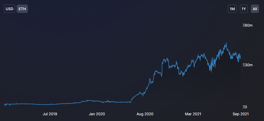 Thông thường, việc rút ETH khỏi các sàn giao dịch có thể do nhiều nguyên nhân. Đó có thể do các NĐT chuyển số ETH về lưu trữ tại các ví trữ lạnh. Hoặc đó cũng có thể là họ chuyển sang các giao thức DeFi khác. Tuy nhiên, mình thiên về giả thuyết NĐT chuyển sang các ví trữ lạnh nhiều hơn. Bởi lẽ, tỷ lệ TVL của các giao thức trên mạng lưới Ethereum thời gian qua có dấu hiệu sụt giảm.