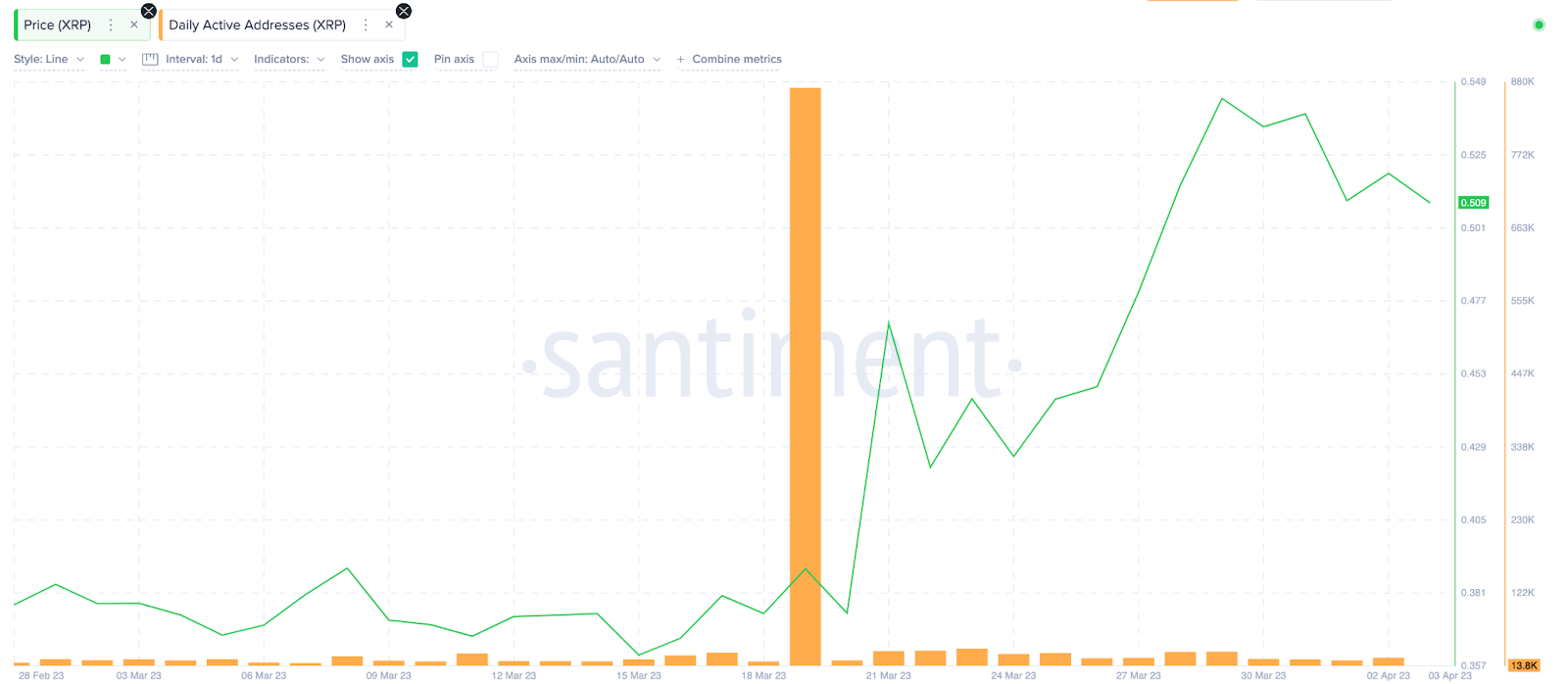 Theo Santiment, chỉ báo Mean Coin Age của XRP đã giảm kể từ ngày 06/3. Sau khi giá tăng 27% vào khoảng ngày 19/3, chỉ số này lại càng giảm sâu hơn nữa. Từ ngày 06/3 đến ngày 03/4, Mean Coin Age của XRP đã giảm đáng kể từ 57.97 ngày xuống còn 24.97 ngày.