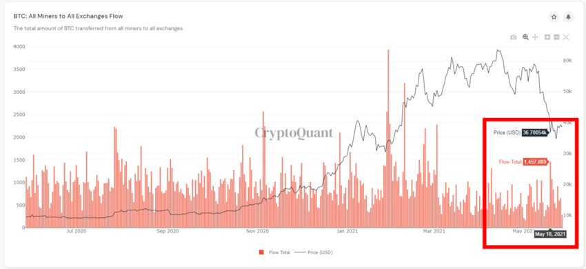 Thật vậy, con số tiền gửi di chuyển từ các thợ đào đến các sàn giao dịch là 1,457.89 BTC. Số liệu được lấy vào ngày 18 tháng 5, ngày xảy ra “sự cố”.