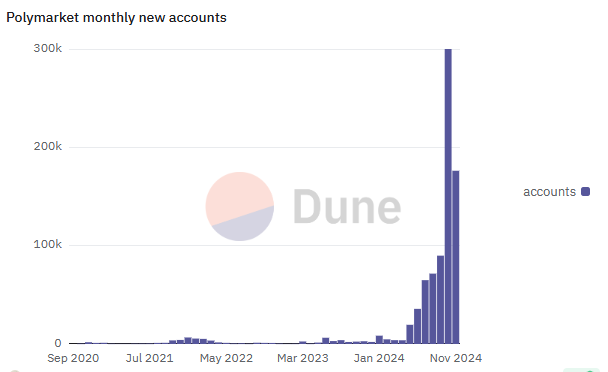 Trong khi đó, cuộc bầu cử Mỹ là một yếu tố quan trọng thúc đẩy Polymarket. Nó đã đưa nền tảng này đạt đến một kỷ lục mới về mức độ tương tác của người dùng và khối lượng cược. Các thị trường liên quan đến bầu cử của Polymarket đã được giới thiệu trên các nền tảng tài chính lớn, bao gồm Bloomberg, làm nổi bật sức hấp dẫn của nền tảng đối với tài chính chính thống.