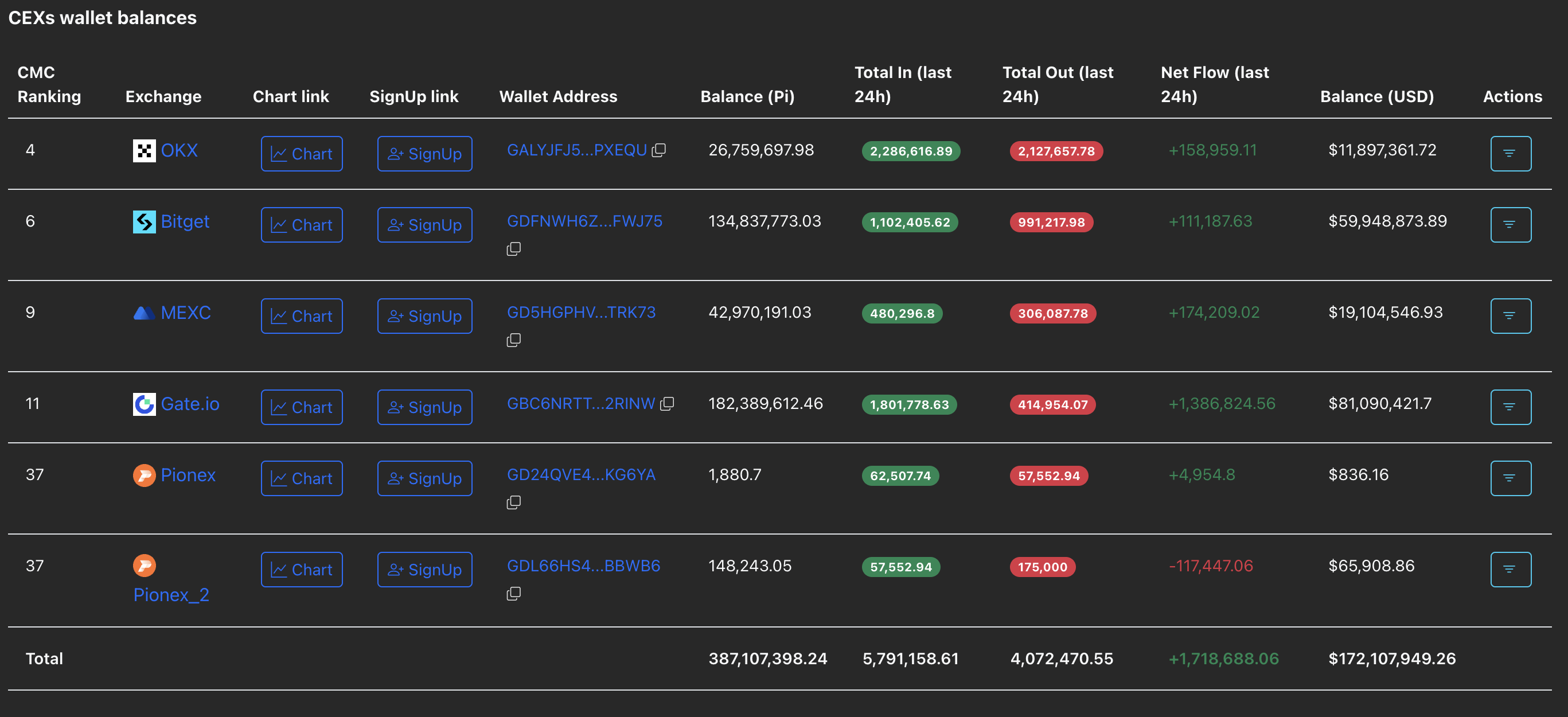 Mặc dù động lượng có thể đang cải thiện, dòng tiền vào sàn giao dịch lại kể một câu chuyện khác. Trong 24 giờ qua, hơn 5.7 triệu PI đã vào ví CEX, theo dữ liệu từ PiScan. Điều này thường cho thấy áp lực bán vẫn đang hoạt động, khi các nhà giao dịch chuyển tài sản lên sàn để có thể bán.