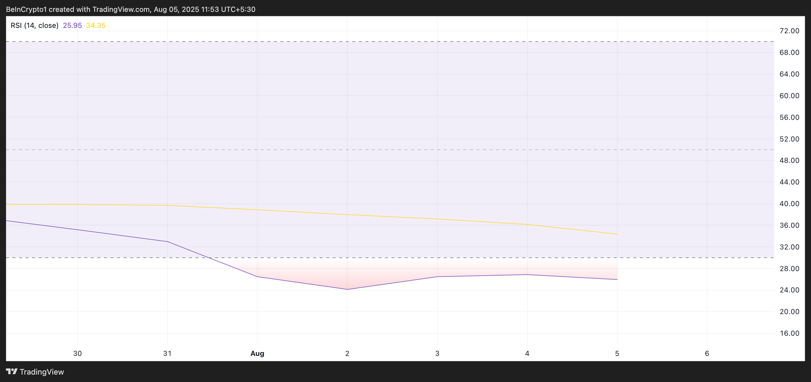 Hơn nữa, Average True Range (ATR) của PI đã có xu hướng giảm kể từ ngày 02/08/2025, xác nhận sự do dự của thị trường. Tại thời điểm viết bài, chỉ báo này đứng ở mức 0.03.