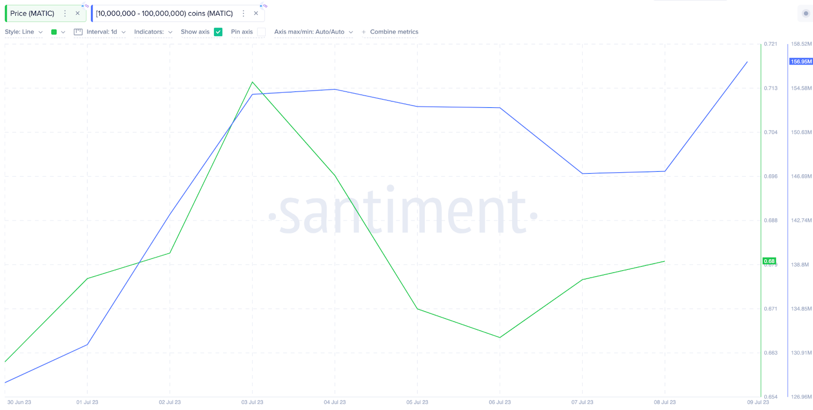 Như được thấy bên dưới, những con cá voi đã mua thêm 10 triệu mã thông báo MATIC trong vòng 48 giờ sau sự kiện này. Với giá hiện đang ở mức 0.7 USD, khoản đầu tư mới trị giá gần 7 triệu USD. Nói chung, việc tích lũy của cá voi thường đưa đến tín hiệu tăng giá cho các nhà đầu tư nhỏ chiến lược và những người tham gia khác. Và điều quan trọng ở đây là các xu hướng trong lịch sử cho thấy giá MATIC thường tăng mạnh khi nhóm một cá voi bắt đầu mua vào.