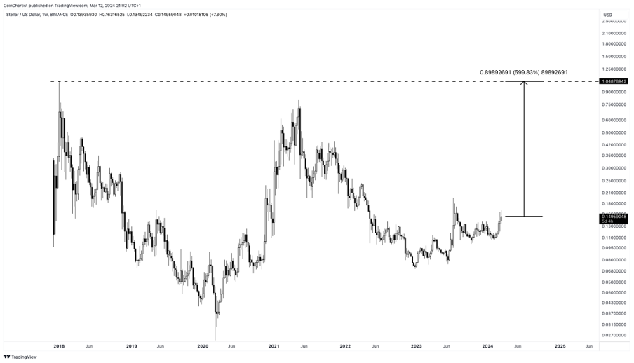Stellar Lumens, một công nghệ sổ cái phân tán, được thiết kế để tạo điều kiện cho thanh toán, chuyển tiền xuyên biên giới. Điều này có thể mở ra những cơ hội rộng lớn cho dự án cũng như các nhà đầu tư nắm giữ đồng coin của dự án này. Hiện giá Stellar đang giao dịch ở mức 0.11 USD và việc quay trở lại mức cao nhất mọi thời đại là 0.93 USD có thể tạo ra lợi nhuận ấn tượng lên tới 745%. Với trọng tâm là cải thiện tốc độ của các giao dịch tài chính và đơn giản hóa các giao dịch quốc tế, Stellar Lumens đã thu hút sự quan tâm đáng kể từ cả cá nhân và tổ chức.