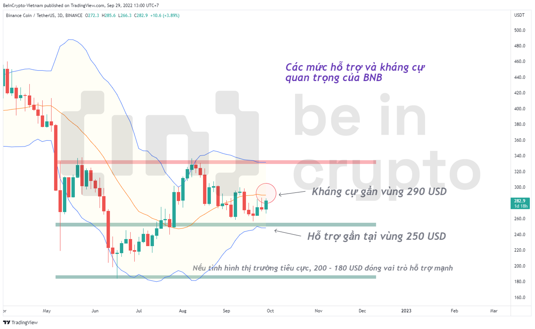 Như kịch bản đã đề cập trong bài phân tích trước, BNB đã giảm từ vùng 290 USD về vùng 250 USD trong tháng 9 này. Dù với mức giảm gần 15%, BNB vẫn là Altcoin giữ được giá tốt trong khi nhiều Altcoin đã về vùng hỗ trợ của hồi tháng 6.
