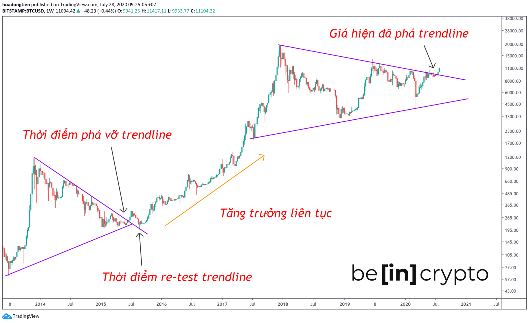 - Thời điểm giữa năm 2020, giá hiện đã phá vỡ trendline kháng cự lớn. Liệu những kịch bản của 2015 sẽ lặp lại.