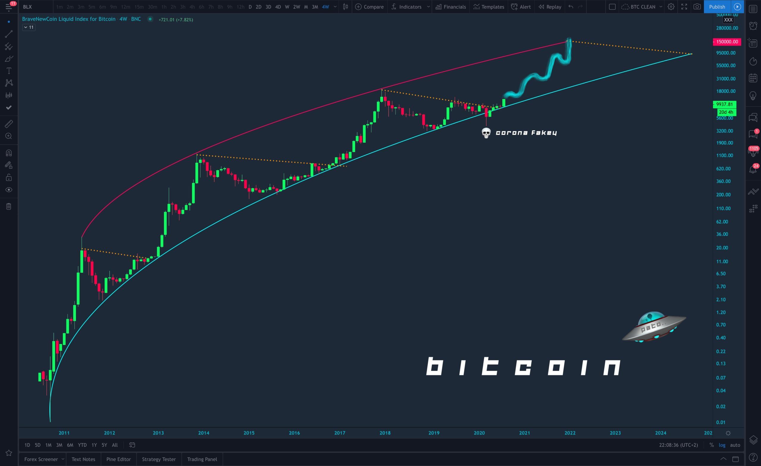 Kể từ hôm qua, khi Bitcoin chính thức phá vỡ mốc kháng cự 10.400 đô la. Đây là mốc kháng cự mạnh trong gần 2 năm liền. Thì hàng loạt dự đoán tăng trưởng đã được đưa ra. Trong có thể kể đến dự đoán của @moonshilla khi khẳng định giá Bitcoin đang trên đường tới 150.000 đô la.