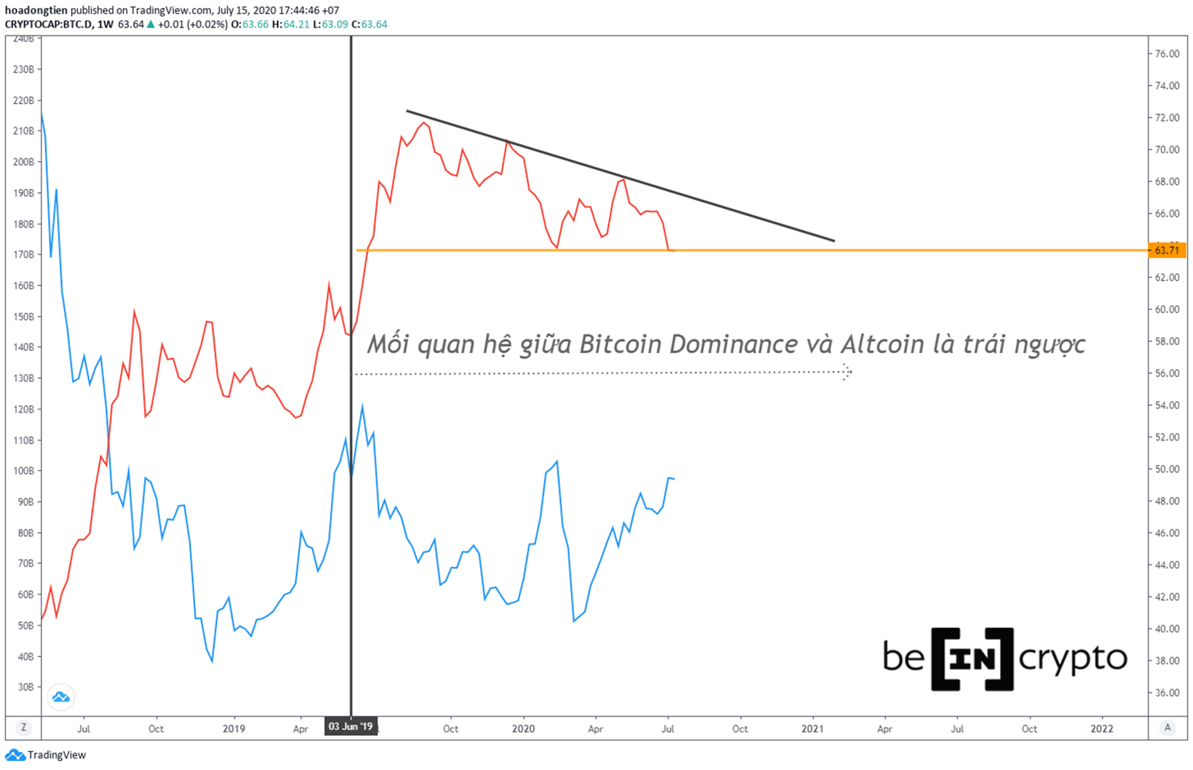 Mối quan hệ giữa Bitcoin Dominance và vốn hóa Altcoin là trái ngược