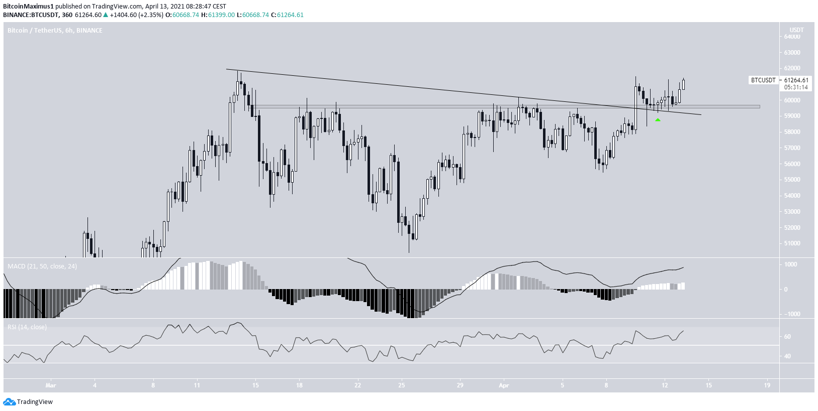 Vào ngày 10 tháng 4, Bitcoin đã cố gắng đạt mức giá cao nhất mọi thời đại mới. Tuy nhiên, nó đã bị chặn lại bởi vùng kháng cự $61,600.
