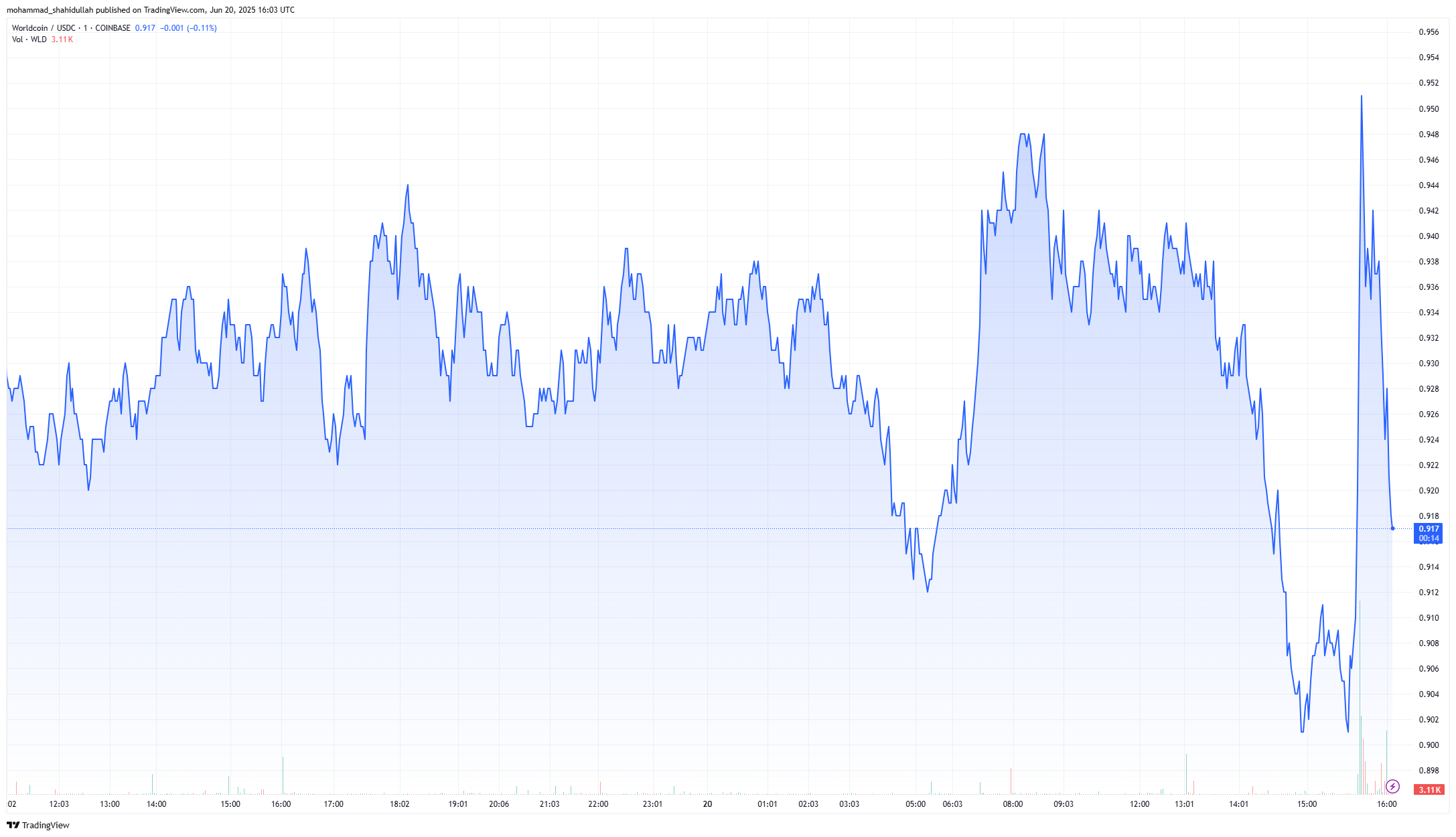 Biểu đồ cho thấy sự phục hồi mạnh mẽ sau khi giảm xuống dưới 0.91 USD, gợi ý rằng các nhà giao dịch có thể đang chuẩn bị cho một đợt bứt phá giá tiềm năng nếu tin tức được xác nhận.