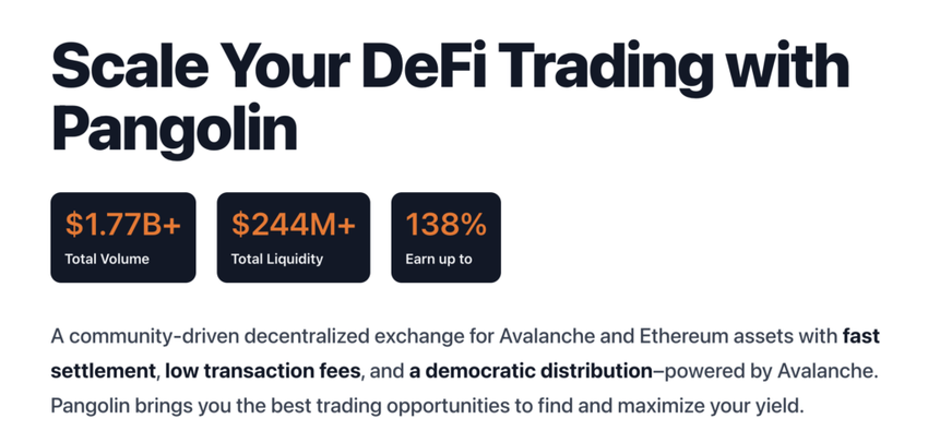 Pangolin là một sàn giao dịch phi tập trung (DEX) hoạt động trên Avalanche. Nó sử dụng mô hình Tạo thị trường tự động (AMM) giống như Uniswap .