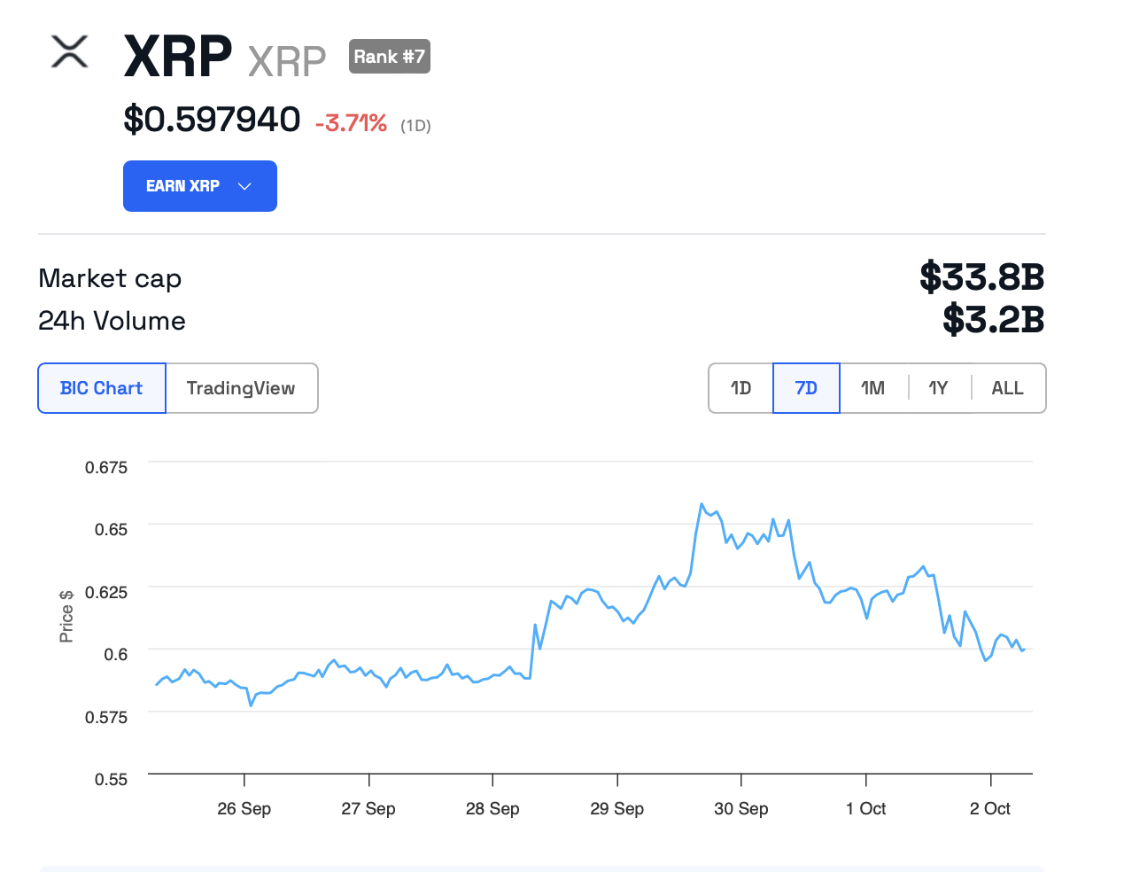 Trong cuộc chiến pháp lý đang diễn ra, token XRP vẫn đang gặp khó khăn dưới mức tâm lý quan trọng 1 USD. Theo dữ liệu từ BeInCrypto, XRP hiện đang được giao dịch ở mức 0.59 USD, giảm gần 4% trong 24 giờ qua.