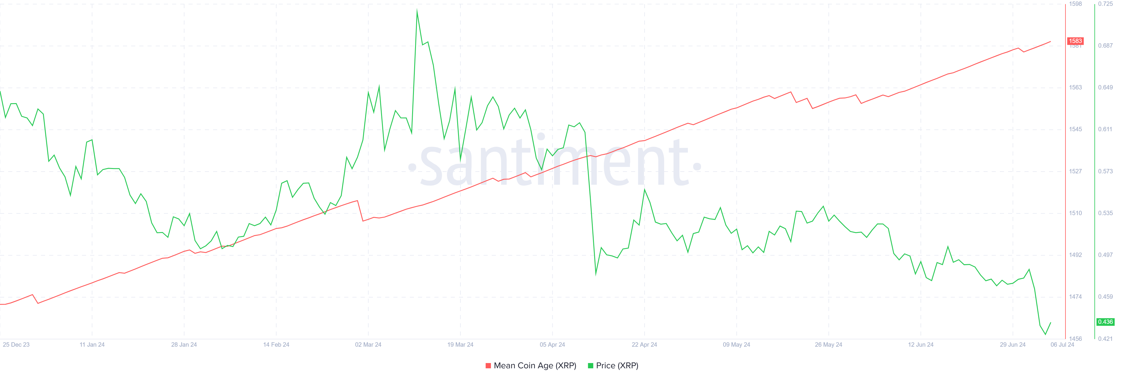 SponsoredTuy nhiên, mặc dù sự tham gia yếu, niềm tin của các nhà đầu tư XRP vẫn mạnh mẽ. Điều này được phản ánh qua Mean Coin Age (MCA), đã ghi nhận sự tăng lên. MCA tăng cho thấy các nhà đầu tư đang giữ XRP của họ trong thời gian dài hơn, thể hiện niềm tin vào tiềm năng tương lai của tài sản.
