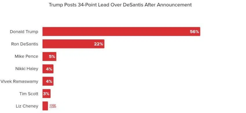 Khi xem xét DeSantis cùng với các ứng cử viên khác, các cuộc thăm dò đã chỉ ra rằng vị chính trị gia này có một đối thủ đáng gờm là cựu Tổng thống Mỹ, Donald Trump.
