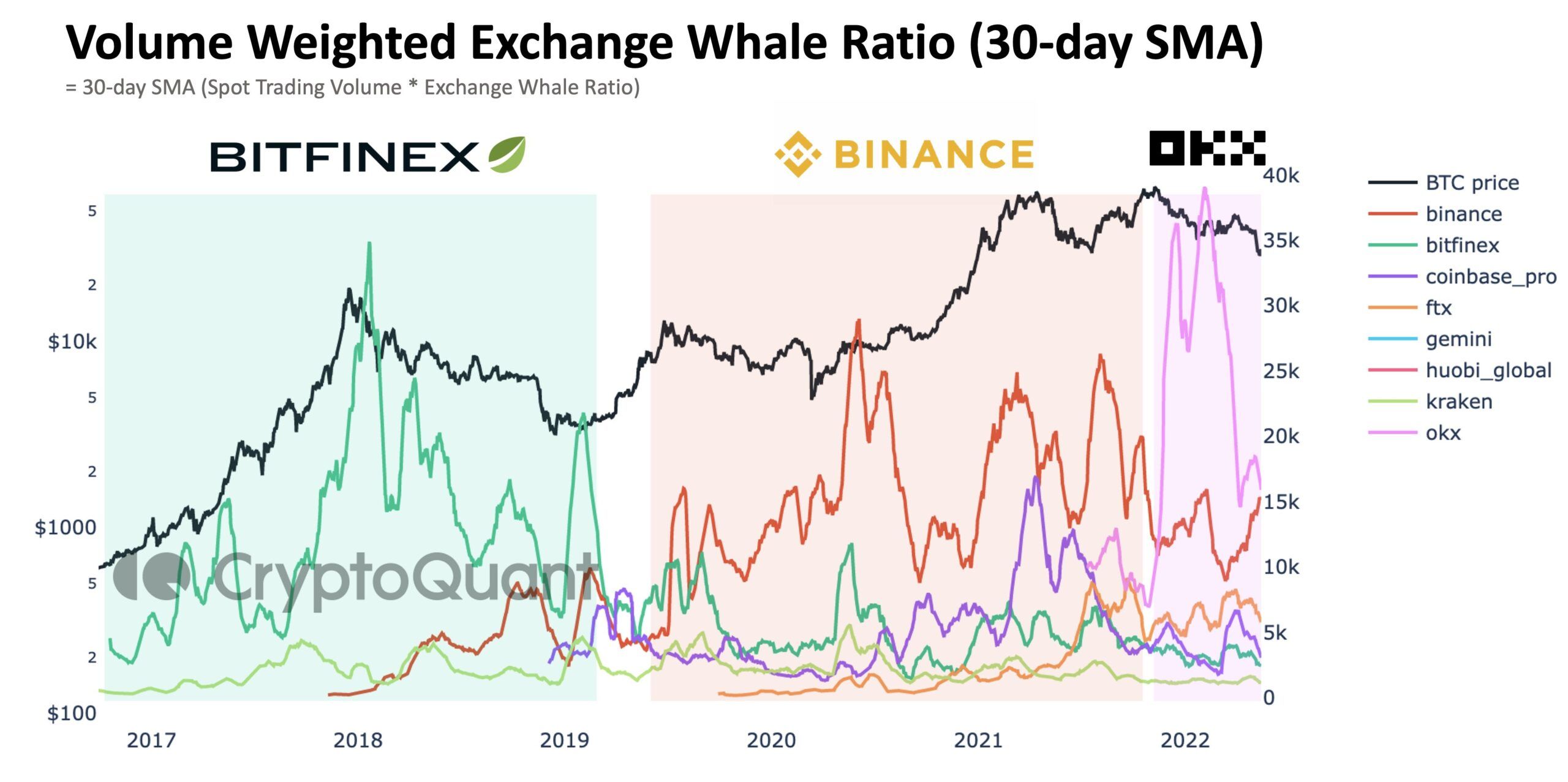 Sponsored SponsoredNhưng khi nhiều sàn giao dịch mới lớn mạnh, thì những cá voi của Binance và OKx dù mật độ không cao (như Bitfinex và Gemini) nhưng khối lượng giao dịch cá voi đã thể hiện sự vượt trội hơn, thậm chí hơn cả Coinbase và FTX.