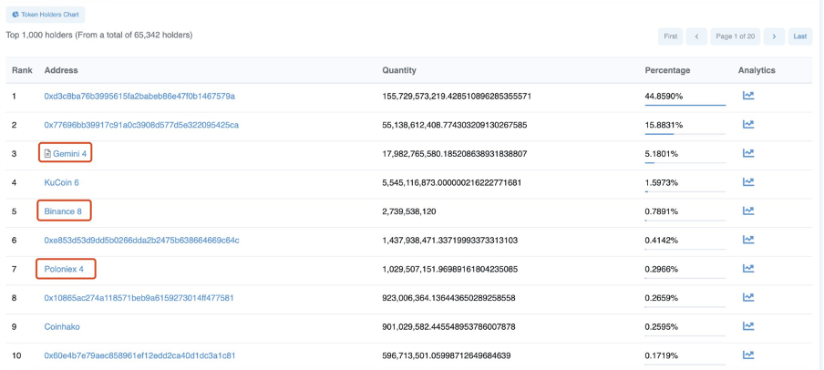 Với lập luận thứ hai của Otteroooo, Johnny cho ra bằng chứng chứng minh KuCoin không phải sàn lưu trữ nhiều LUNA nhất. Quan sát hình bên dưới, ví nóng của sàn giao dịch Gemini đang nắm giữ 5.18% tổng cung LUNA. Ngoài ra, ví nóng của Binance và Poloniex cũng lưu trữ số lượng LUNA gần với KuCoin.