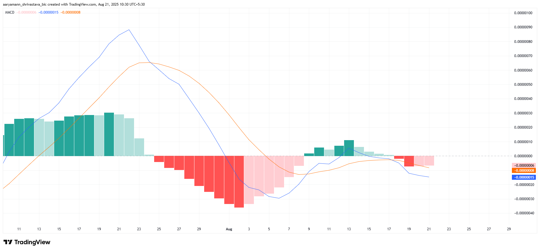 Động lực vĩ mô rộng lớn hơn cho Shiba Inu cho thấy triển vọng giảm giá, với MACD hiện đang chỉ ra một giao cắt giảm giá. Tín hiệu kỹ thuật này cho thấy động lực đang chuyển sang ủng hộ phe gấu, khi áp lực bán vượt qua sự quan tâm mua. Tuy nhiên, giao cắt giảm giá dường như đang mất sức mạnh nhanh chóng, điều này cho thấy thị trường rất biến động.