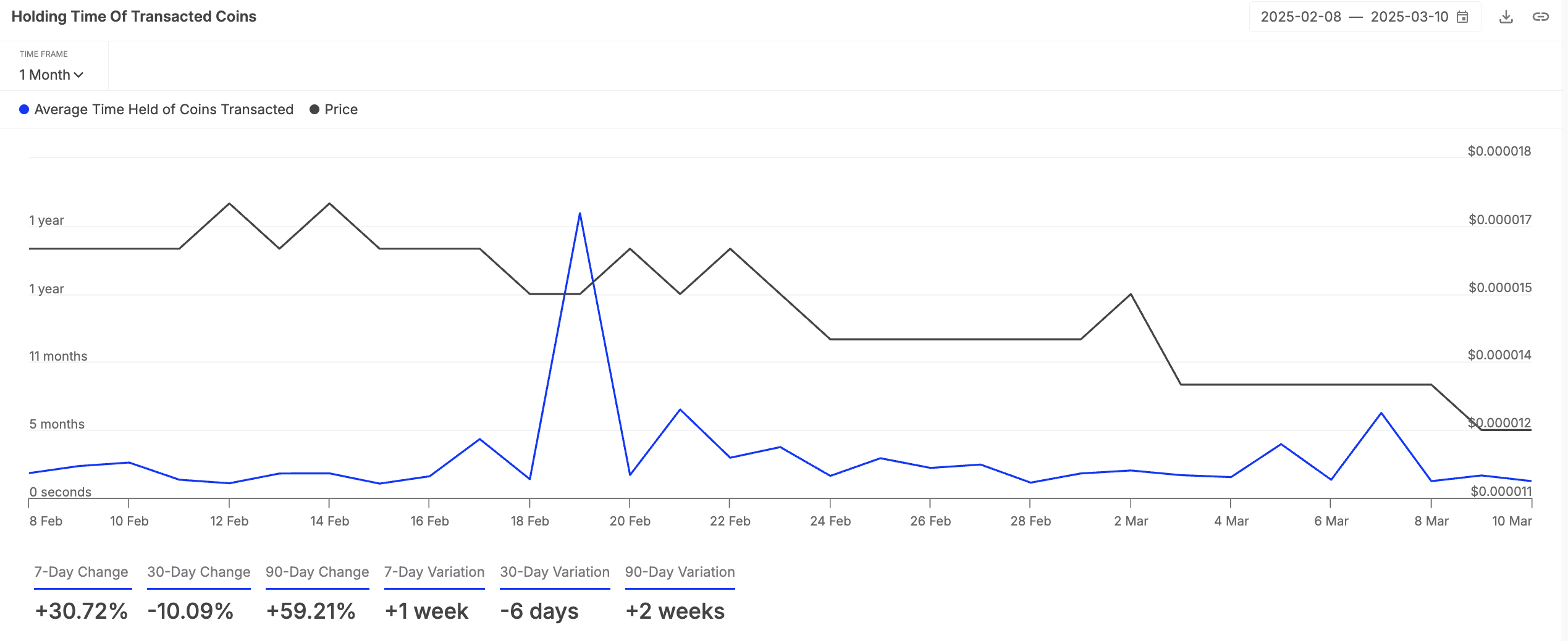 Chỉ số này theo dõi thời gian trung bình mà các nhà đầu tư giữ token của họ trước khi bán. Thời gian nắm giữ dài hơn, như đã thấy với SHIB, cho thấy sự tin tưởng mạnh mẽ hơn của nhà đầu tư khi họ không vội vàng bán ra.