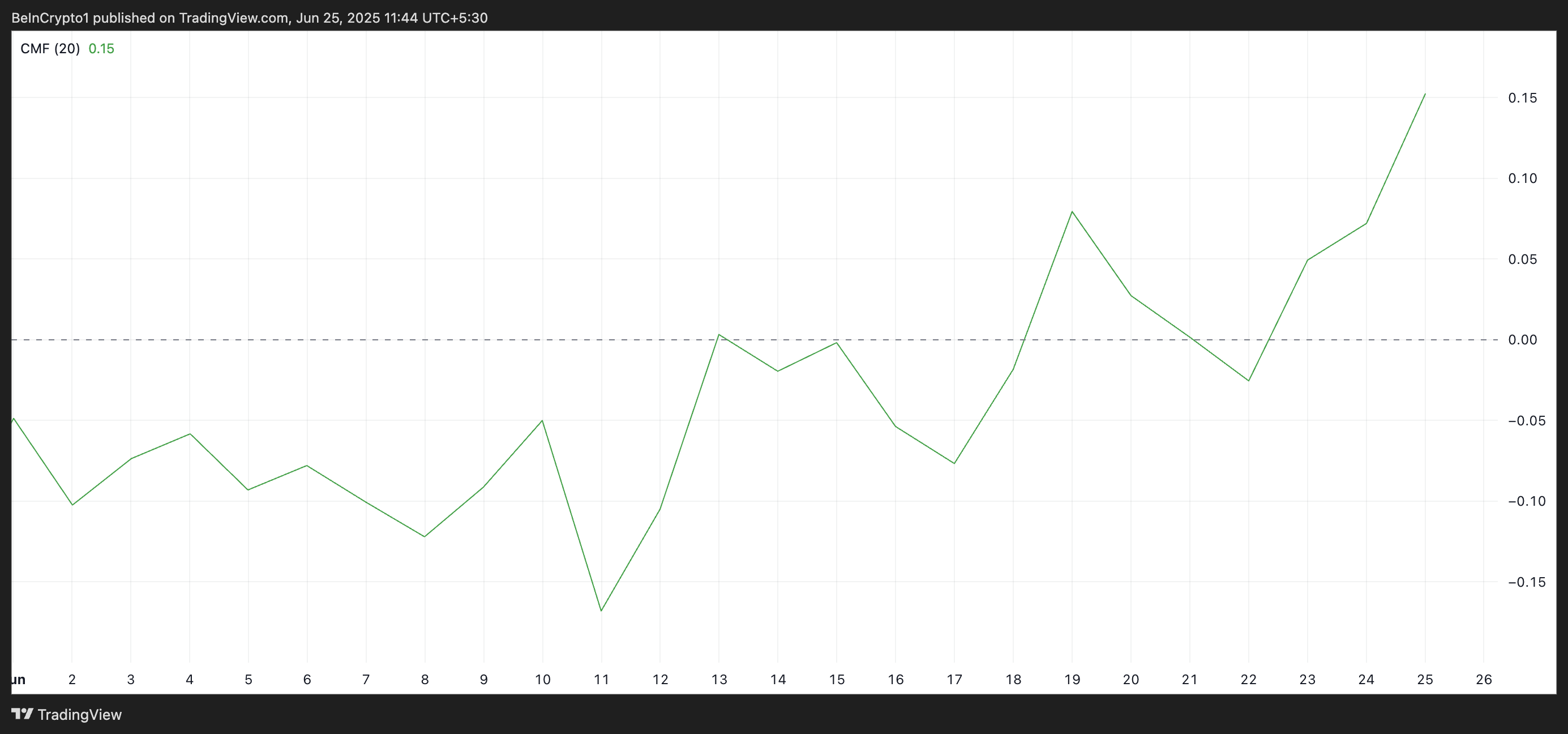 Hơn nữa, trong các phiên gần đây, Chaikin Money Flow (CMF) của SHIB đã tăng cao hơn, cho thấy dòng vốn đang tăng và nhu cầu đáng kể đối với altcoin này. Tại thời điểm viết bài, chỉ báo động lực quan trọng này đang ở mức 0.15 và tiếp tục tăng.