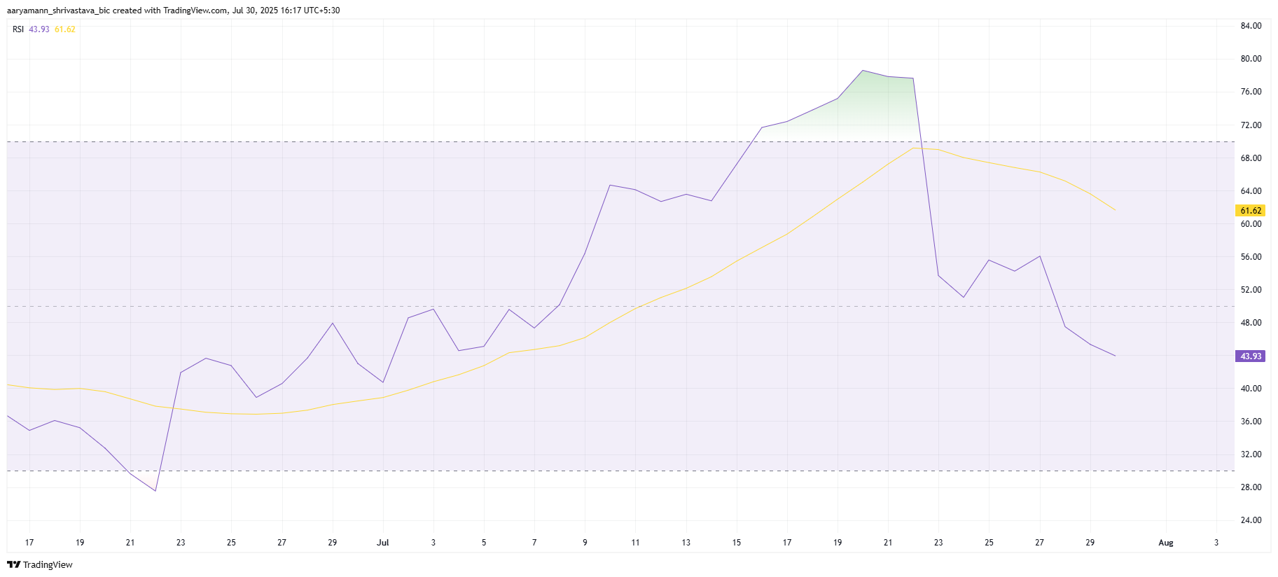 Chỉ số sức mạnh tương đối (RSI) cũng đã có sự thay đổi đáng kể, trượt vào vùng giảm giá dưới mức trung lập 50.0. Điều này cho thấy động lực giảm giá đang hình thành và có thể tiếp tục mạnh lên, đẩy giá SHIB xuống thấp hơn.