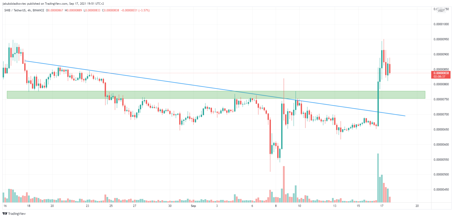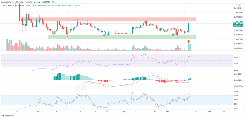 Vào ngày 16 tháng 9, SHIB đã tăng 26% và tiếp cận vùng kháng cự trên một ngày sau đó. Tại thời điểm viết bài, SHIB đã bị từ chối tại khu vực này, để lại một râu nến dài phía trên.