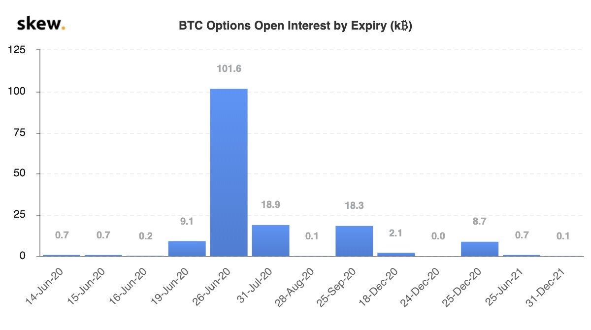 Theo công ty phân tích tiền điện tử Skew, có hơn 100.000 hợp đồng quyền chọn BTC sắp sửa hết hạn vào cuối tháng 6 này. Số lượng đáng kinh ngạc này là kết quả bùng nổ của hợp đồng mở trong quyền chọn Bitcoin.