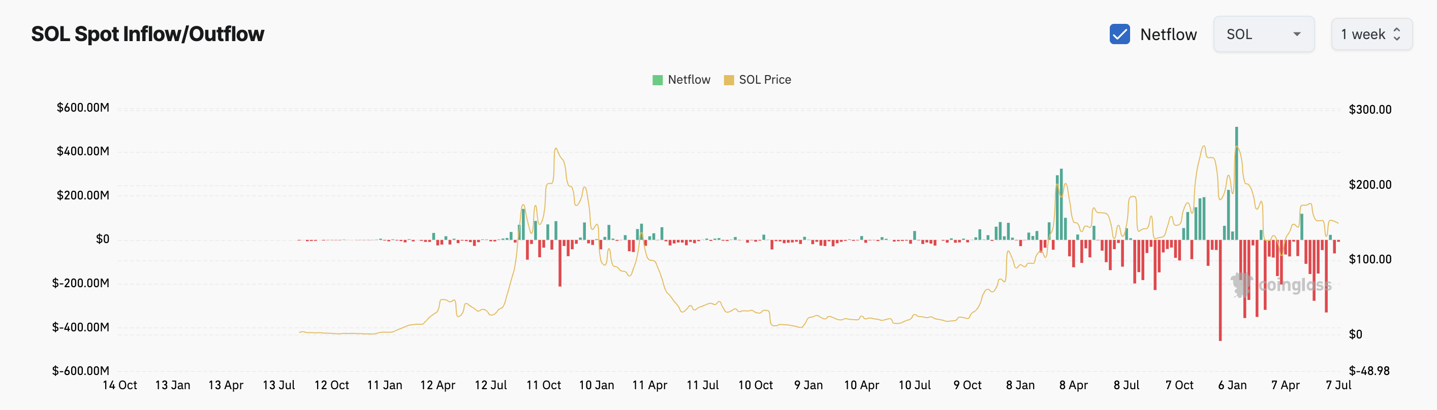 Dữ liệu từ Coinglass cho thấy Solana đã chứng kiến dòng tiền ra ổn định trong đầu tháng 07. Điều này thường chỉ ra sự tích lũy. Nhưng dòng tiền ra đã chậm lại trong những ngày gần đây, và cũng không có sự gia tăng đột biến trong dòng tiền vào.