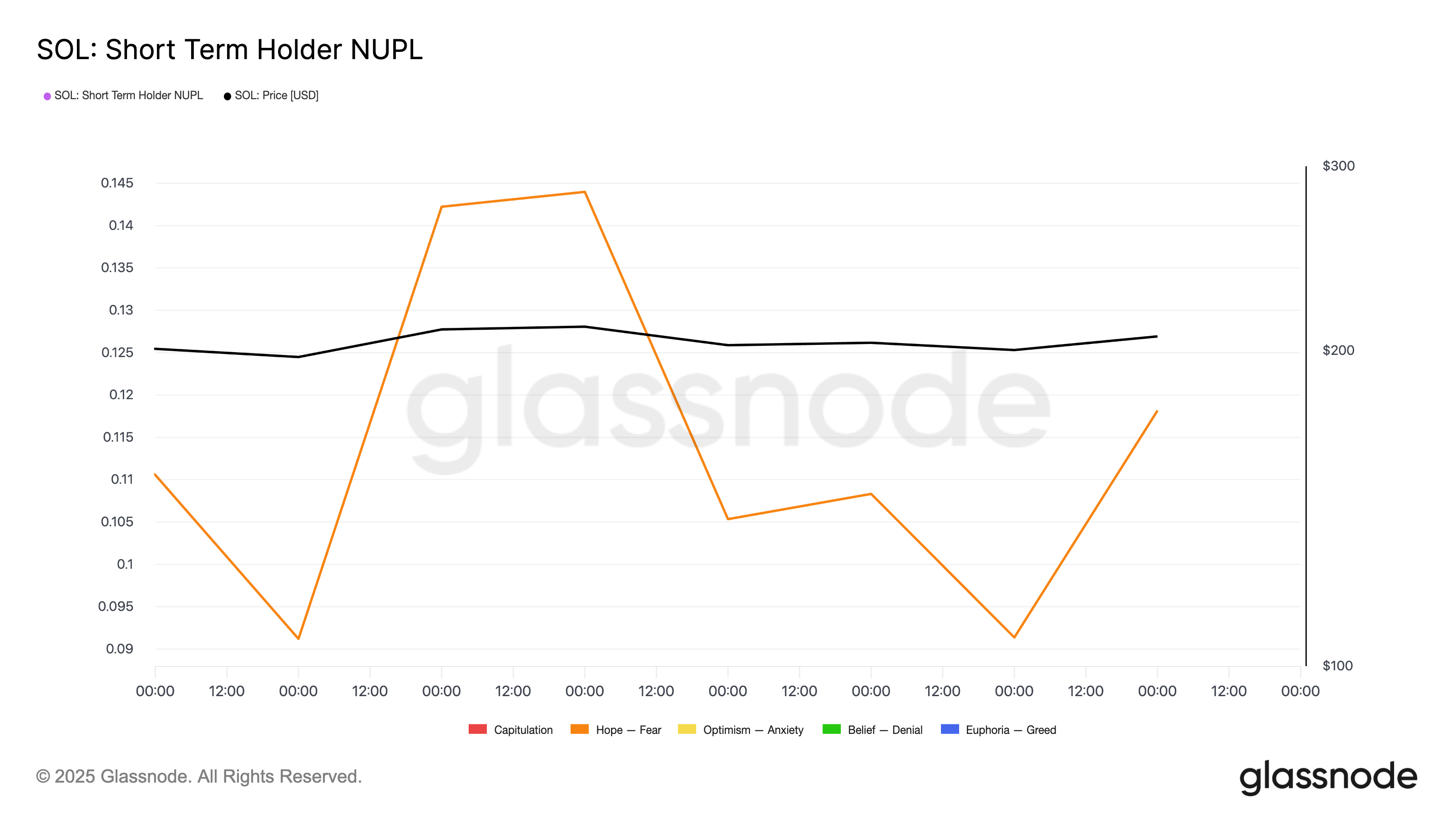 STH-NUPL đo lường lợi nhuận hoặc lỗ chưa thực hiện tổng thể của những người nắm giữ ngắn hạn, nắm bắt liệu nhóm này đang ở trạng thái hưng phấn, lạc quan, hy vọng hay sợ hãi.