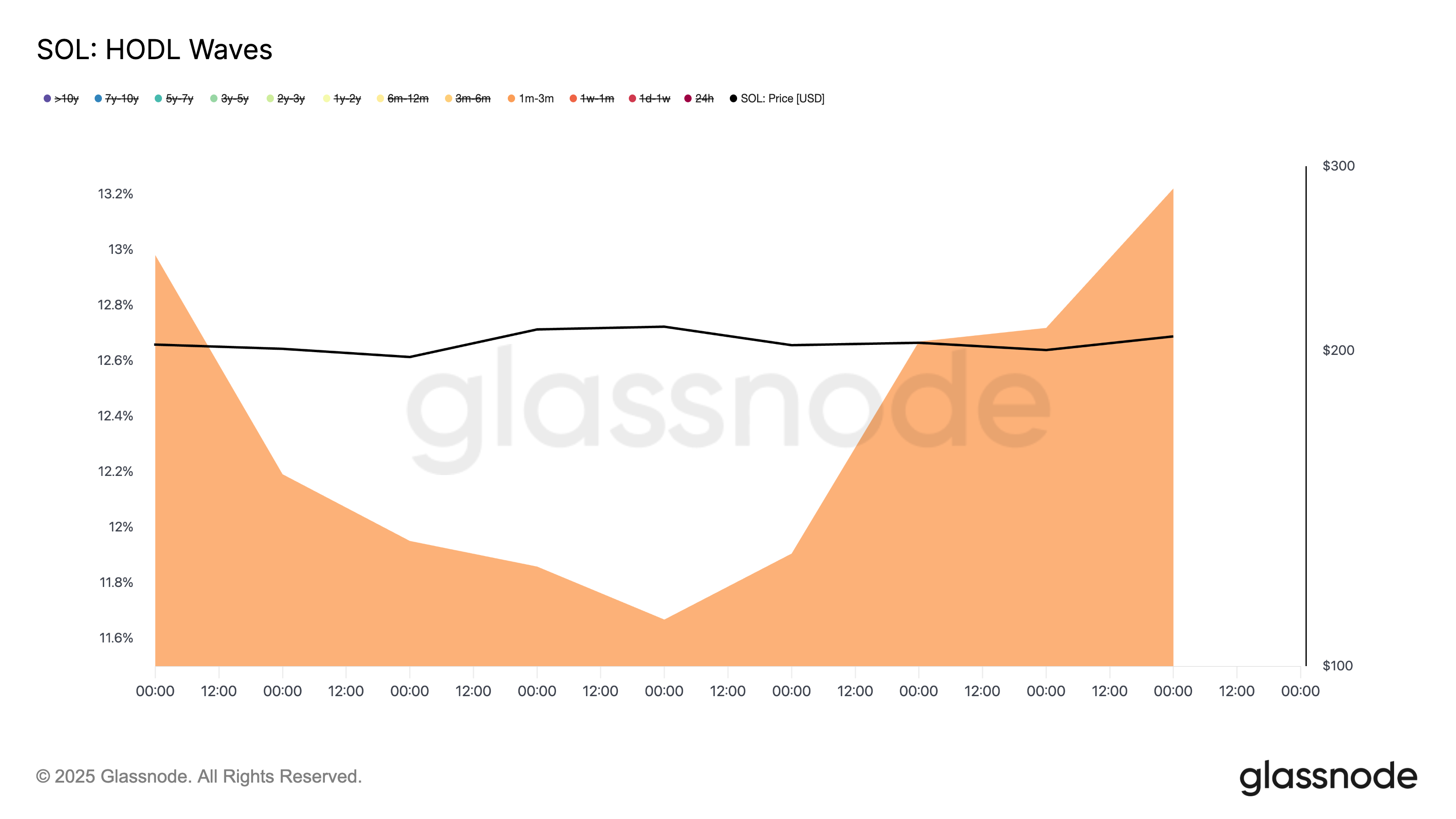Những nhà đầu tư này, những người đã nắm giữ coin của họ từ một đến ba tháng, hiện đang kiểm soát 13.22% nguồn cung lưu hành của SOL, tăng lượng nắm giữ tập thể của họ lên 11% kể từ đầu tháng 09.