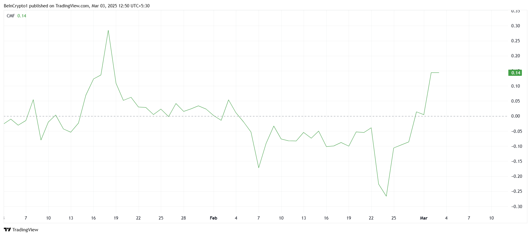 Động lực vĩ mô của Solana vẫn mạnh mẽ, được hỗ trợ bởi chỉ số Chaikin Money Flow (CMF). Sự gia tăng đáng kể trong CMF cho thấy áp lực mua mạnh, với dòng vốn tăng trong vài ngày qua. Điều này cho thấy nhà đầu tư vẫn cam kết với Solana dù có biến động gần đây.