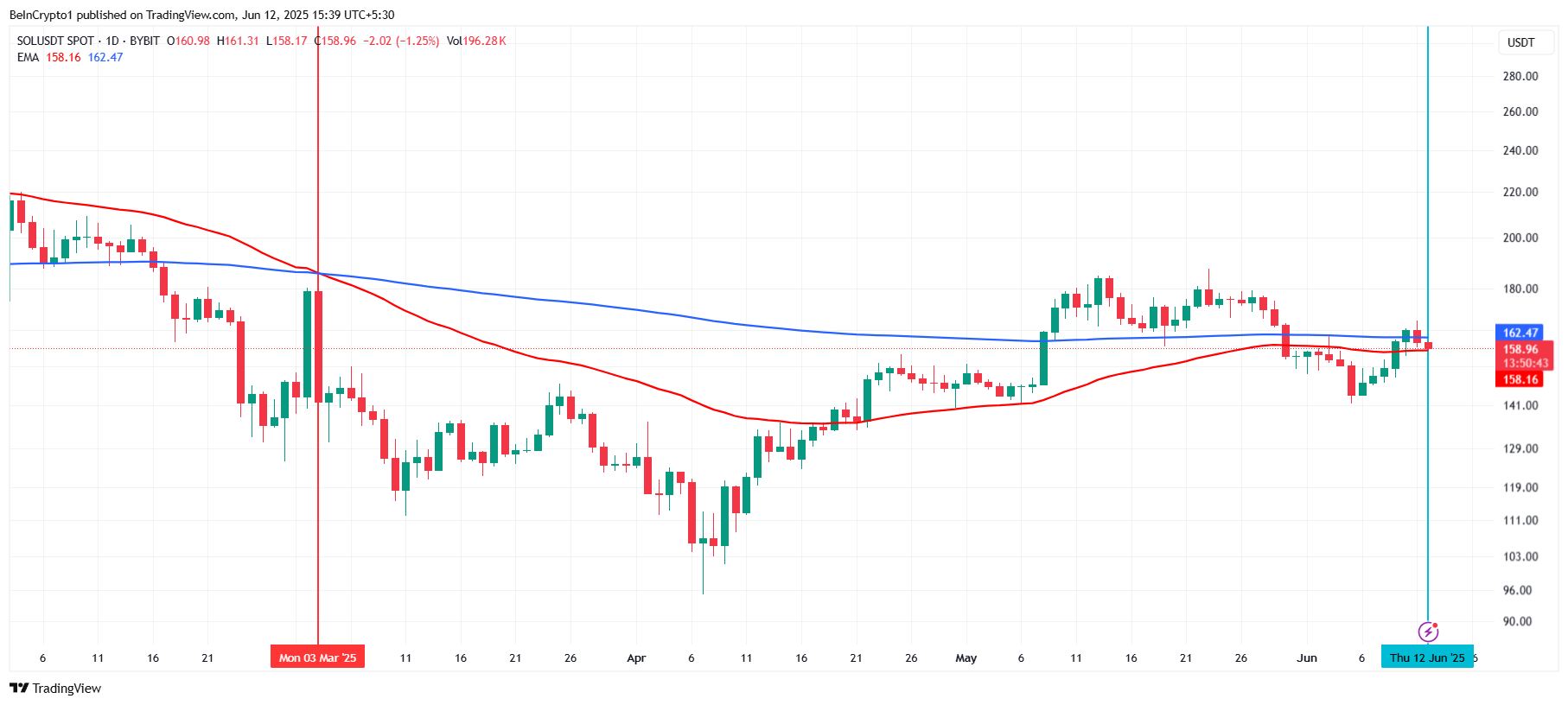 Hiện tại, Solana đang giao dịch ở mức 159 USD, chỉ dưới mức kháng cự 161 USD. Nỗ lực không thành công để vượt qua 165 USD trong tuần này đã dẫn đến xu hướng giảm kéo dài ba tuần, hiện đang có vẻ tăng tốc.