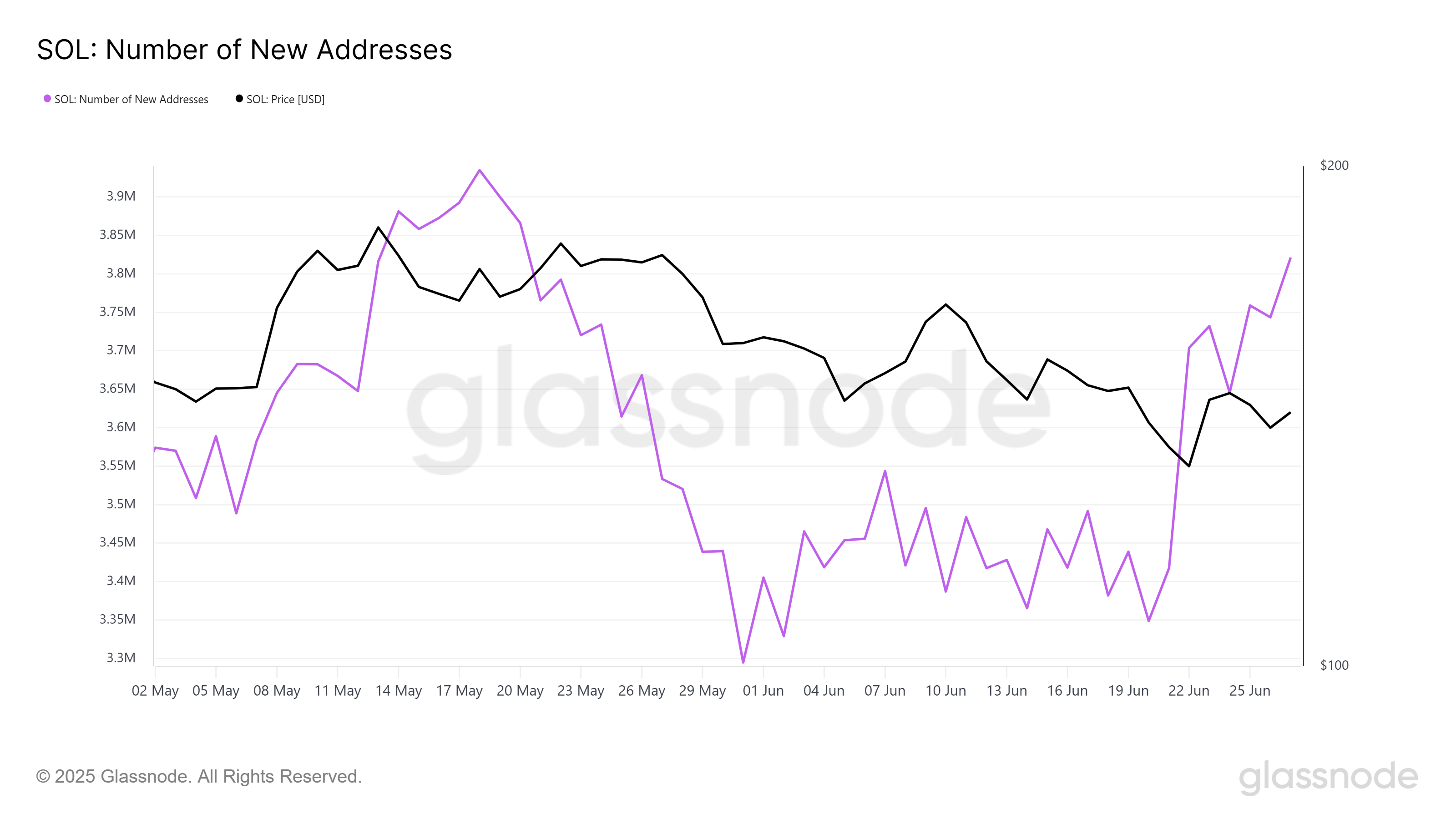 Mặt khác, Solana đang chứng kiến sự gia tăng mạnh mẽ về số lượng địa chỉ mới, cho thấy sự quan tâm ngày càng tăng đối với altcoin này. Xu hướng này nhấn mạnh rằng, mặc dù có sự biến động, các nhà đầu tư mới vẫn lạc quan về tiềm năng của Solana.