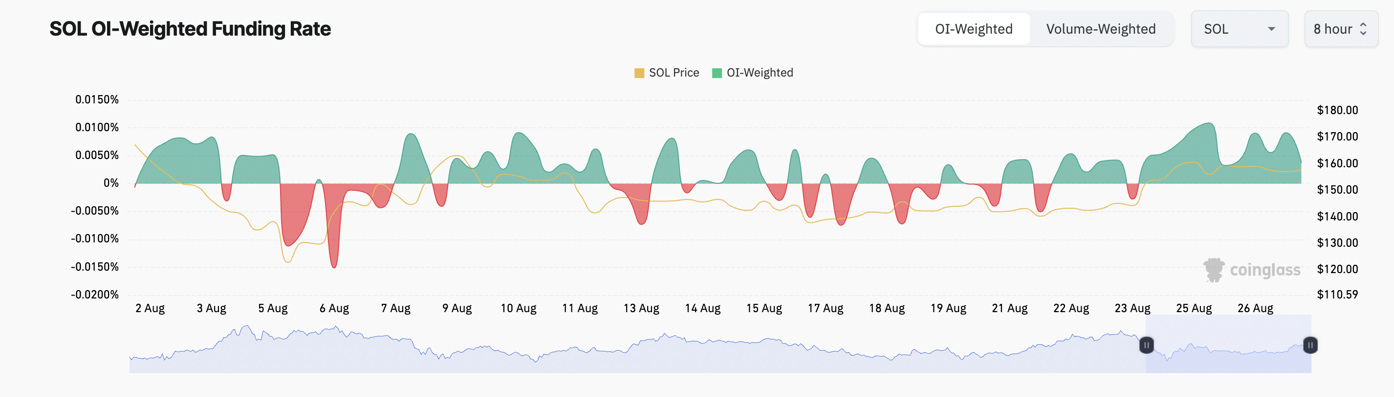 Khi tỷ lệ tài trợ là dương (lớn hơn 0), các nhà giao dịch với vị thế Long phải trả phí cho những người giữ vị thế Short. Điều này cho thấy nhiều nhà giao dịch lạc quan về diễn biến giá của SOL, kỳ vọng vào những lợi nhuận tiếp theo và sẵn lòng duy trì các vị thế Long.